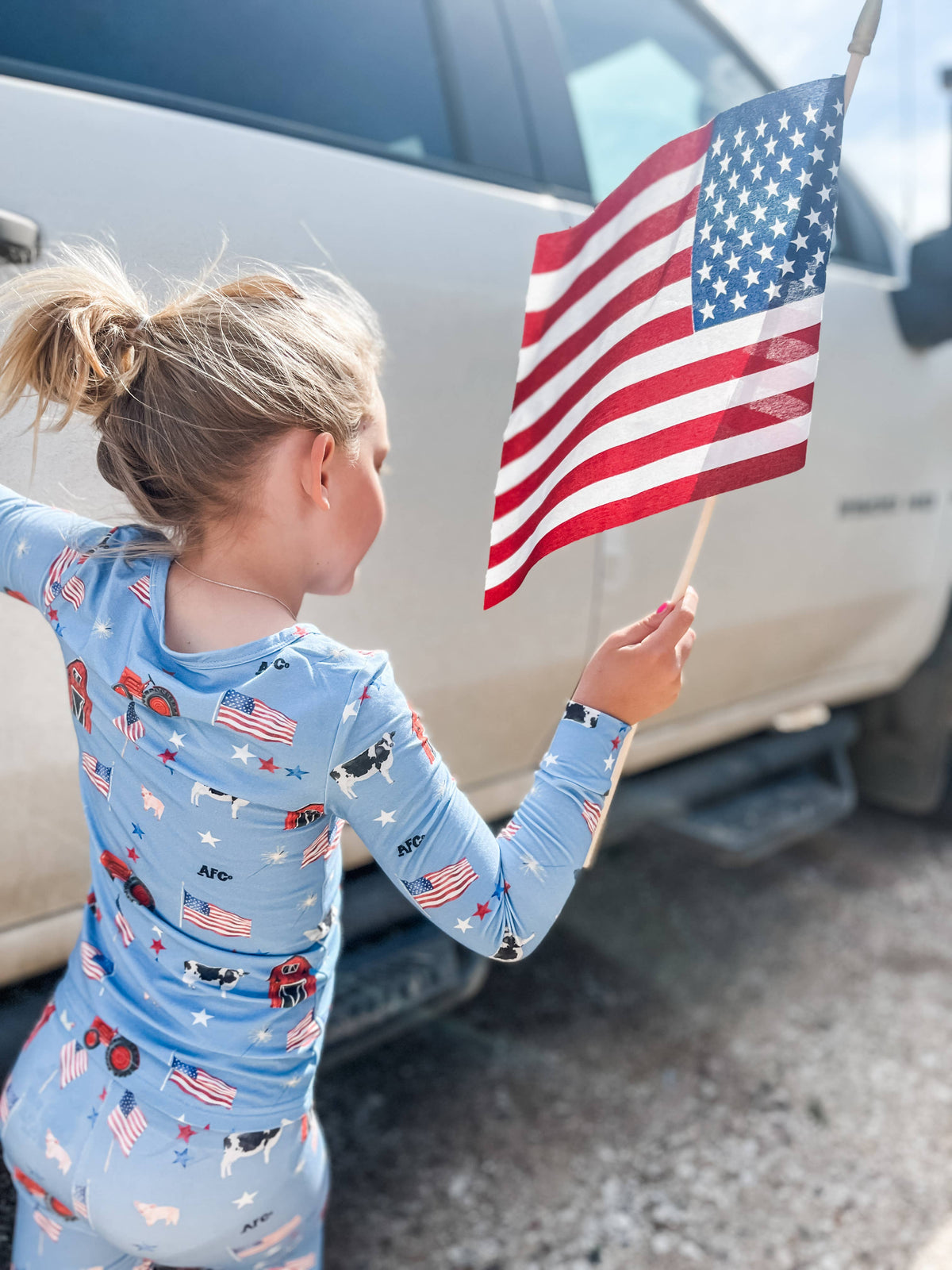 These 2 PC Footless Pajamas are perfect for both youth and toddlers. Made with 95% bamboo viscose and 5% spandex, they are not only soft and comfortable but also feature a cute Patriotic design. Specifications: 95% Bamboo and 5% spandex (Colors may vary on different viewing devices)