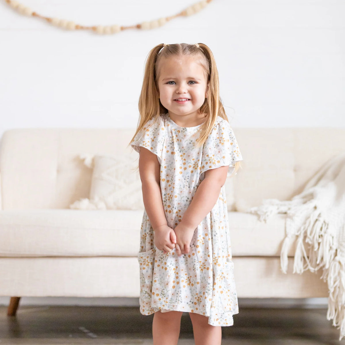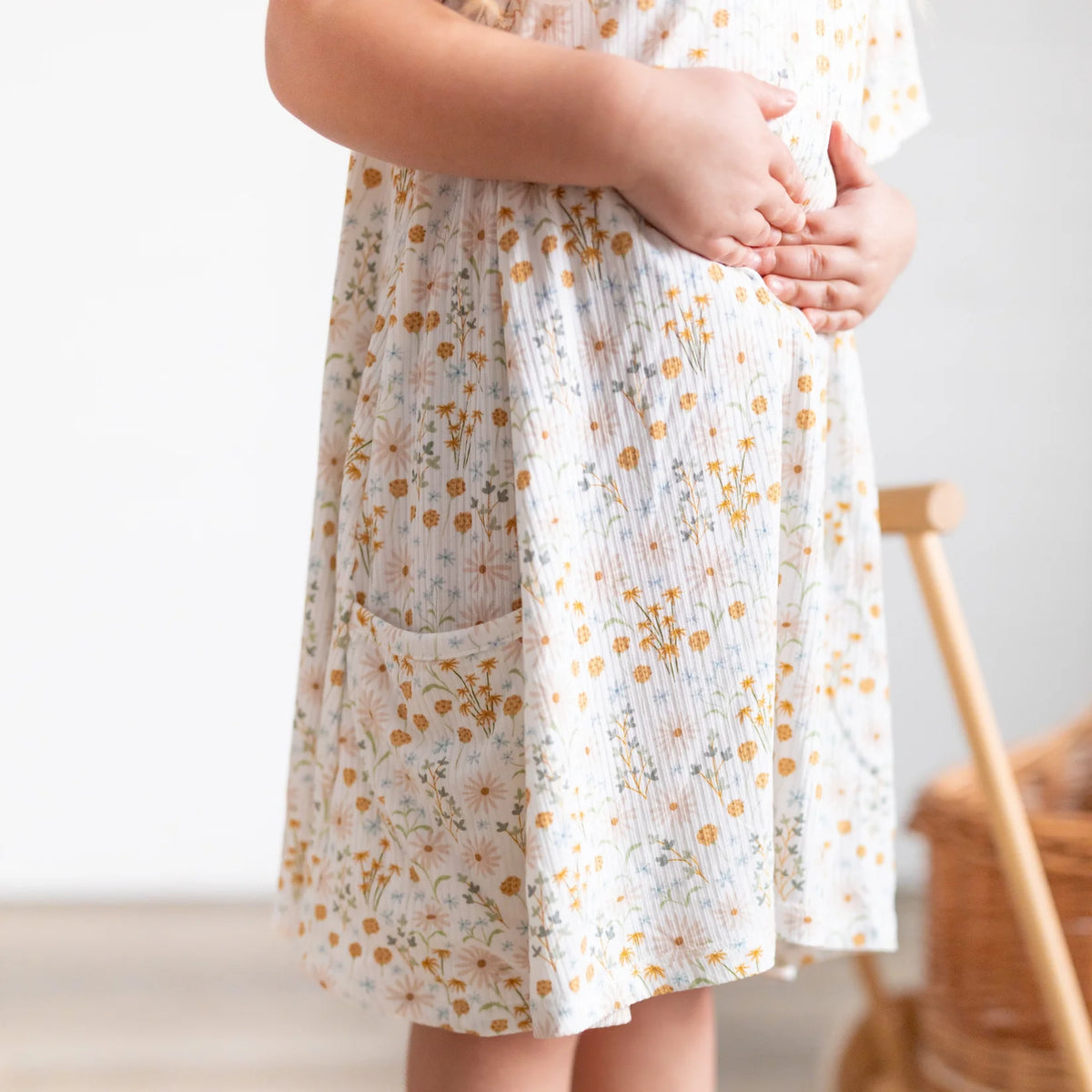 Brave Little Ones Whimsical Floral Small Ribbed Pocket Dress