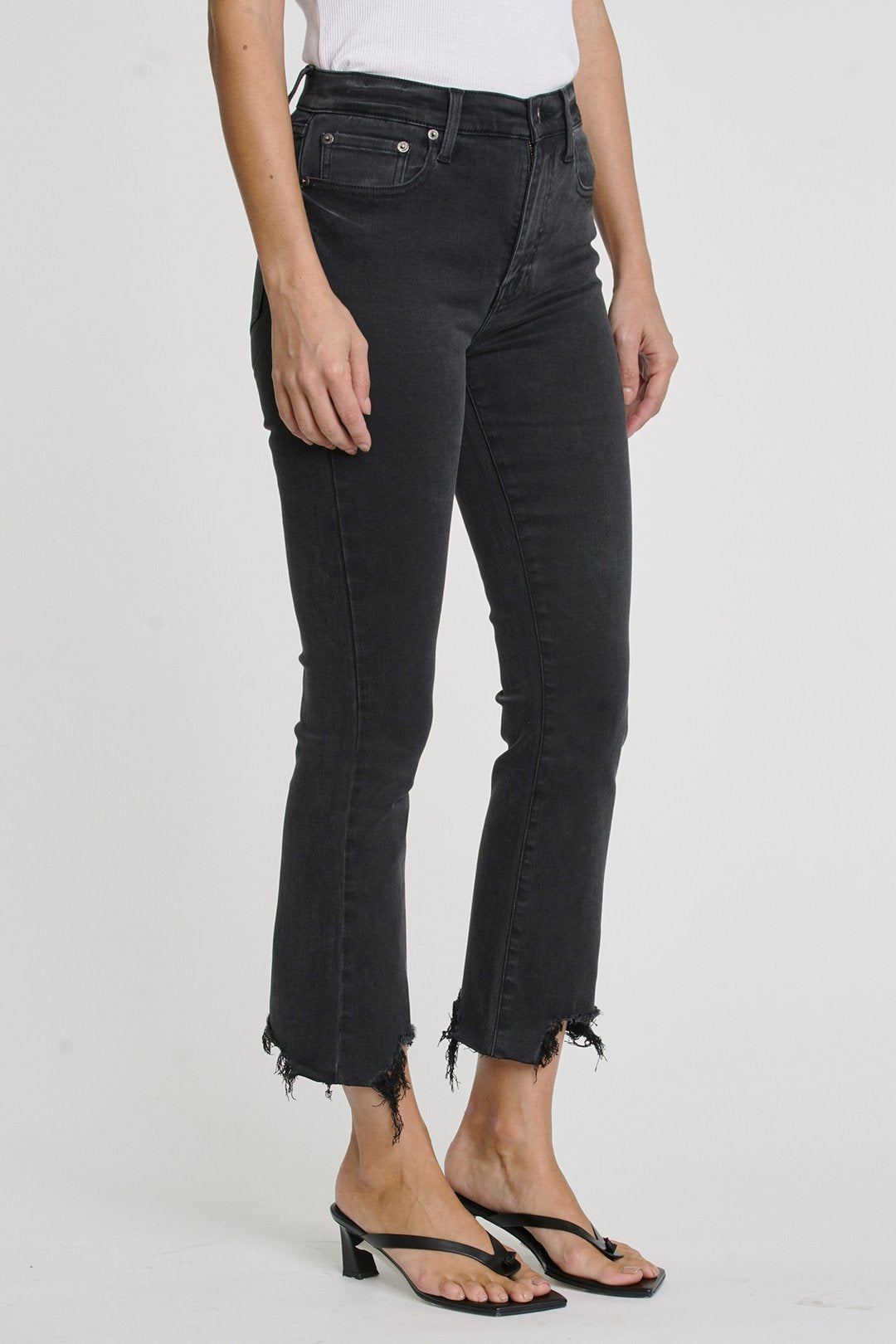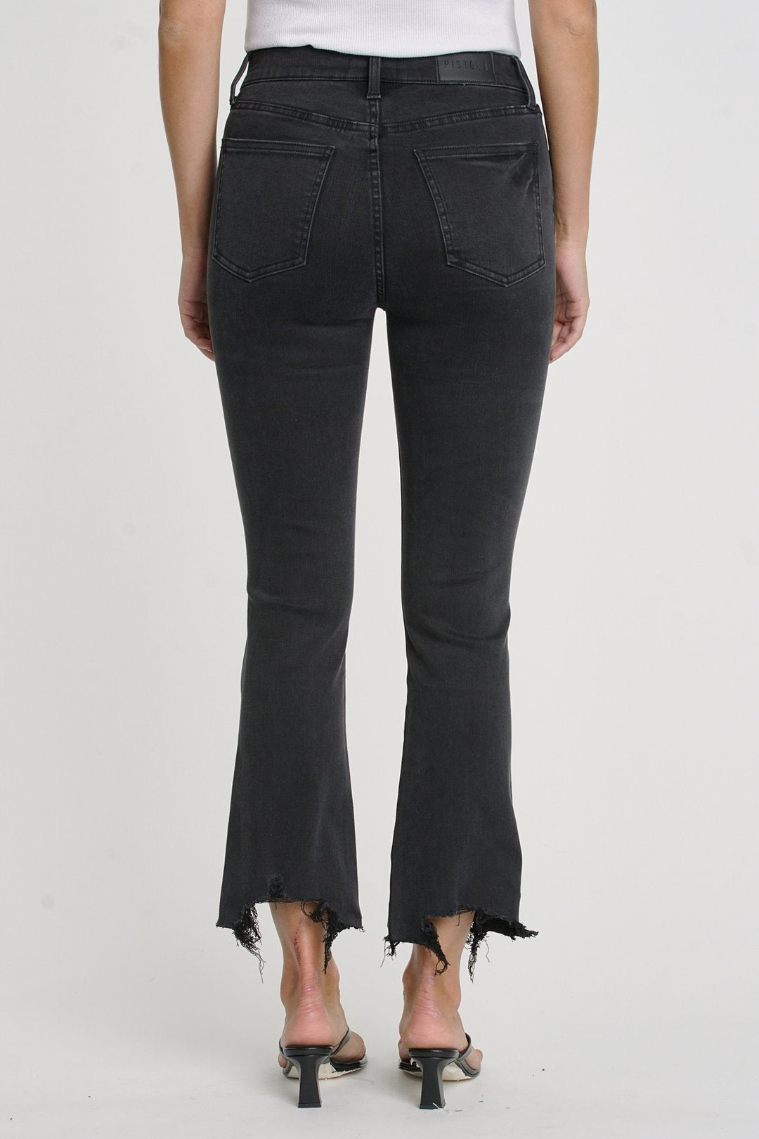 The Lennon is our signature high-rise cropped boot cut. It hugs you from waist to knee and flares out at the ankle — the perfect complement to a statement shoe.
