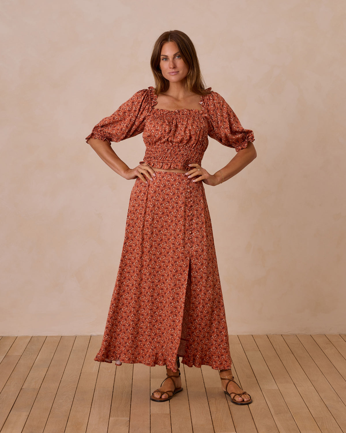 Rylee & Cru Button Slit Skirt || Red Floral