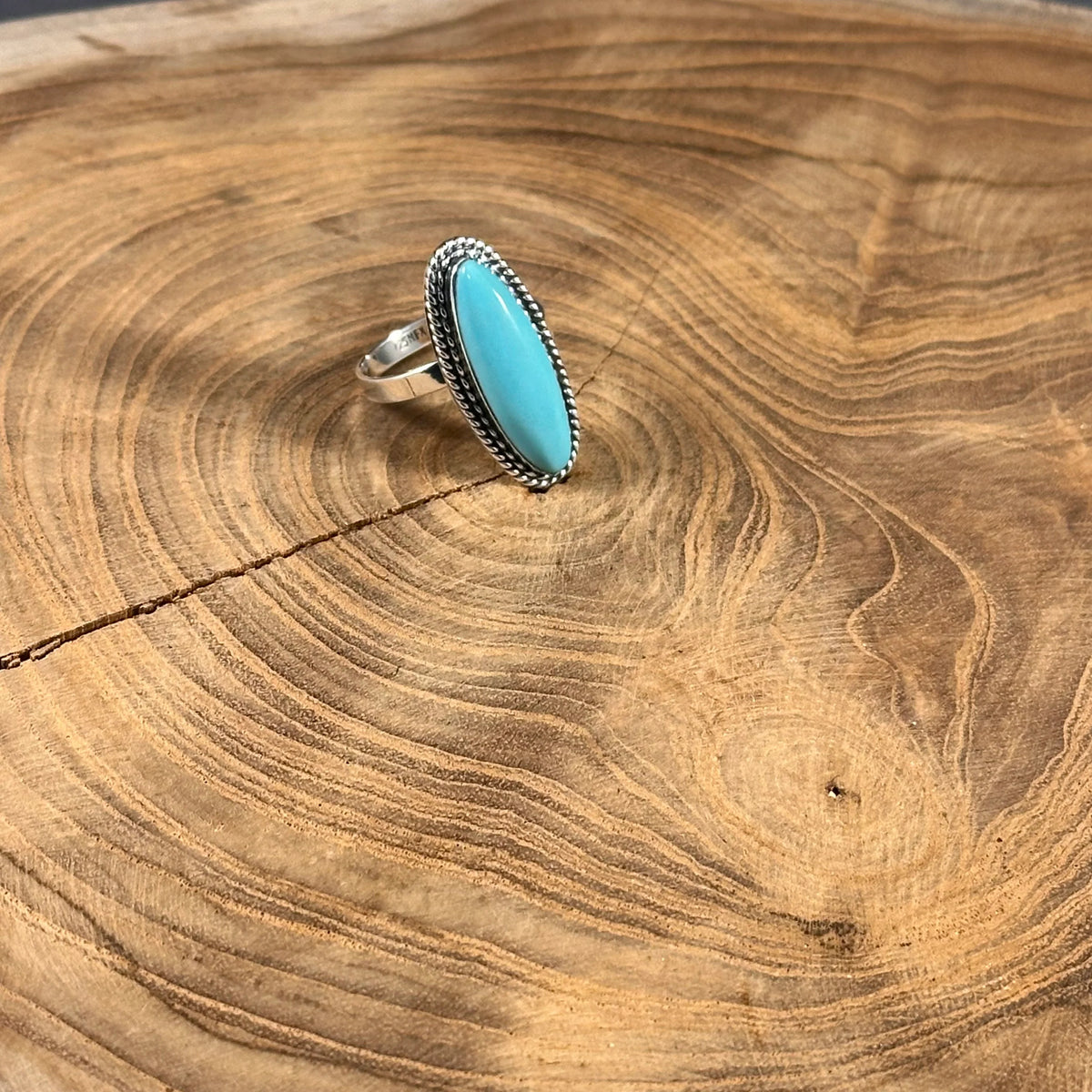 Skinny Sterling Silver Turquoise Oval Rope Adjustable Ring
