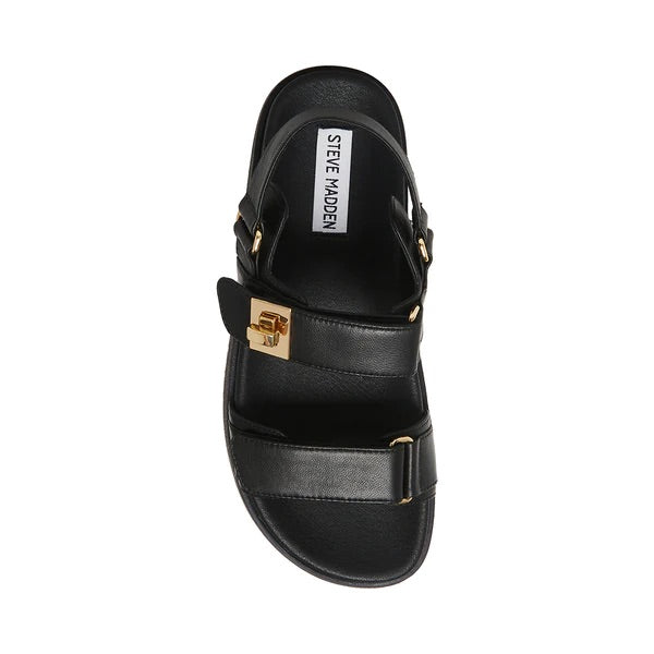 The MONA takes the classic three-strap sandal design with a molded footbed and a flat sole and elevates it with a leather construction and substantial gold tone hardware.