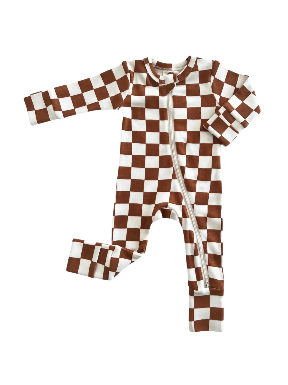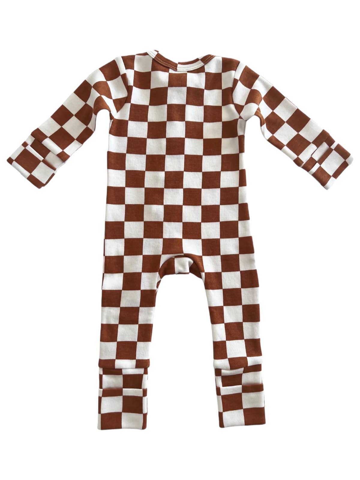 Stracciatella Checkerboard / Organic 2-Way Zip Romper
