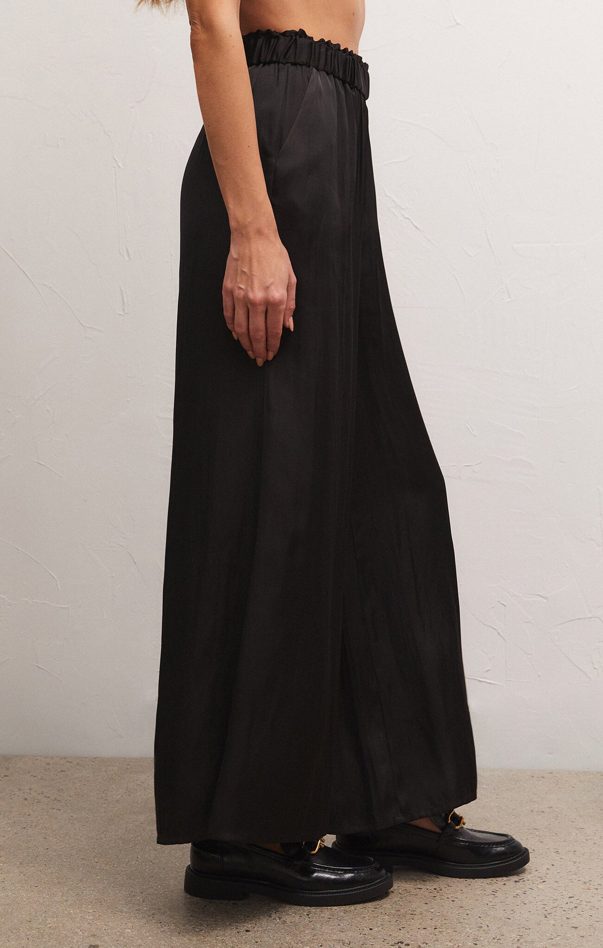 Dress up your wardrobe this season with the Estate Lux Sheen Pant. Made using our Poly Sheen fabric, this chic pant features a ruffle edge waistband, wide leg and nice drape throughout. Pockets finish off this style. Pair it with the Serenity Lux Sheen Top. Fabric Content: 100% Polyester
