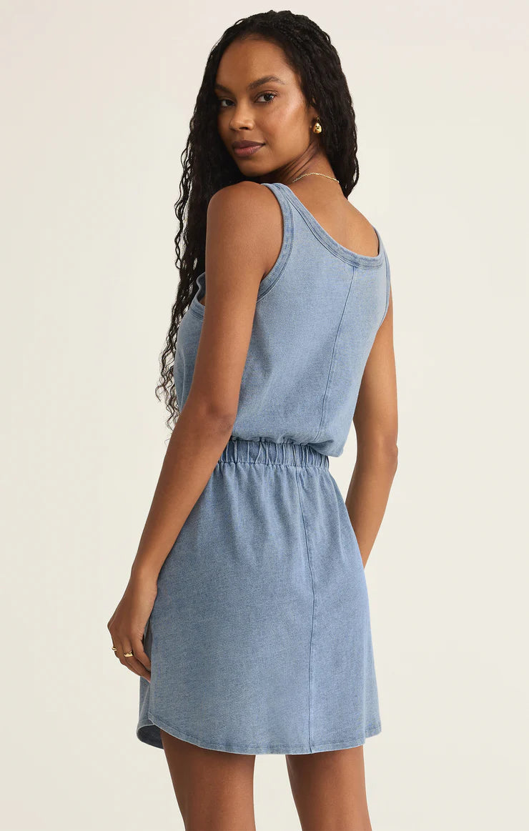 Meet your new favorite mini, made from our Jersey Denim, with a sleek scoop neck, wide straps, and an effortless fit, it’s ready for anything, day or night.
