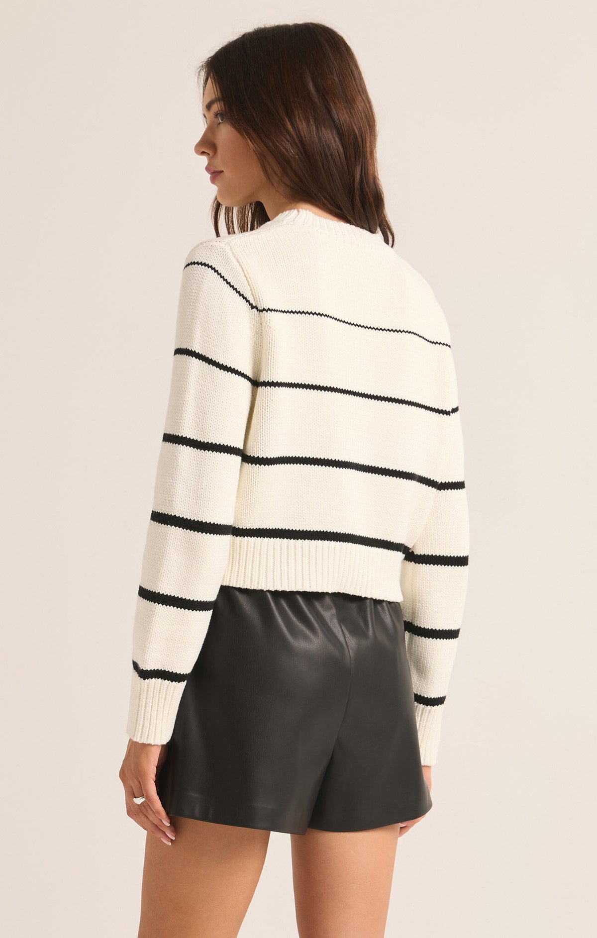 This sweater is made using our cotton sweater yarns and features a classic placement stripe for eye-catching appeal. You'll love the soft, cozy feel and relaxed fit of this crew neck.
