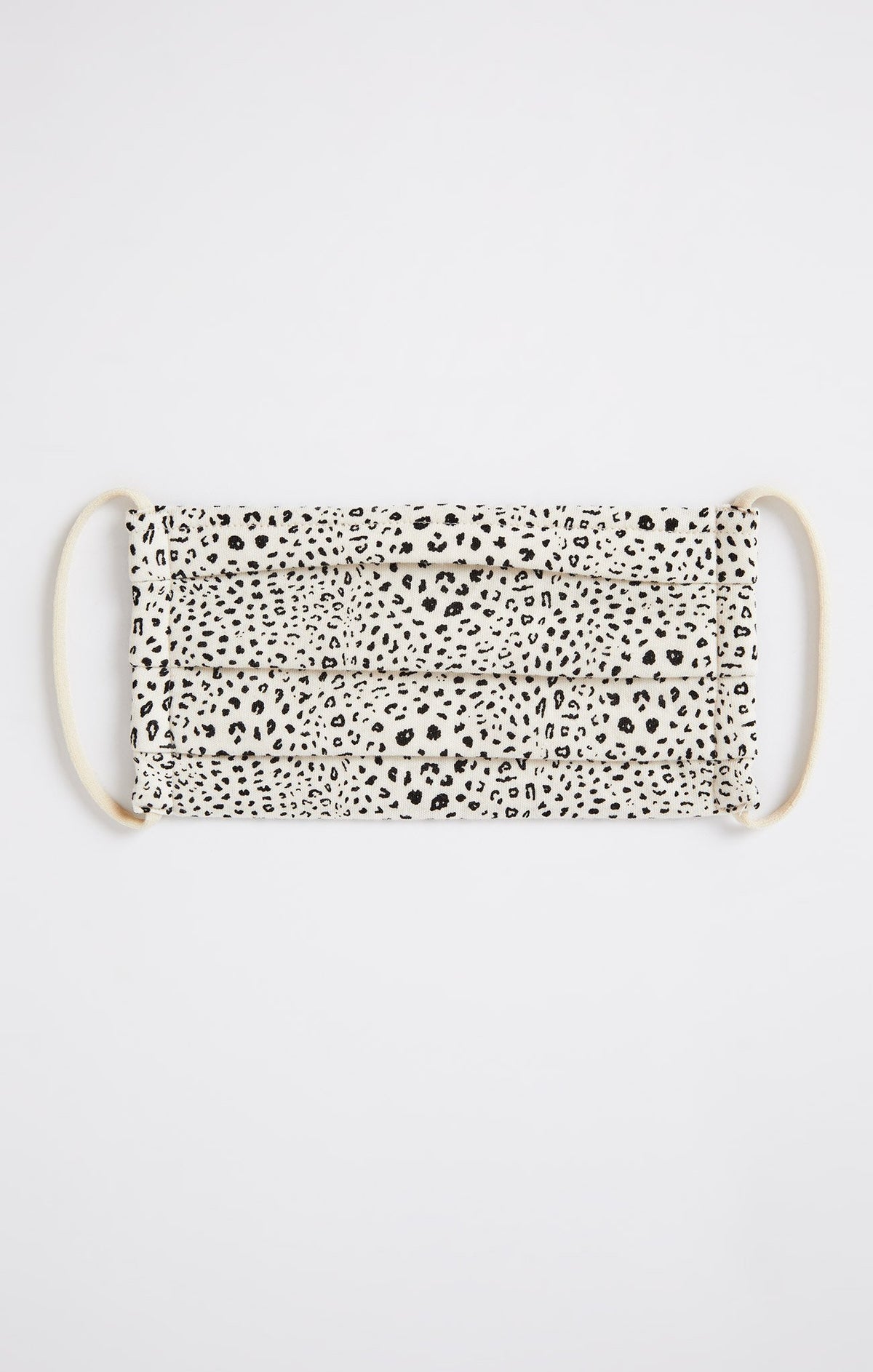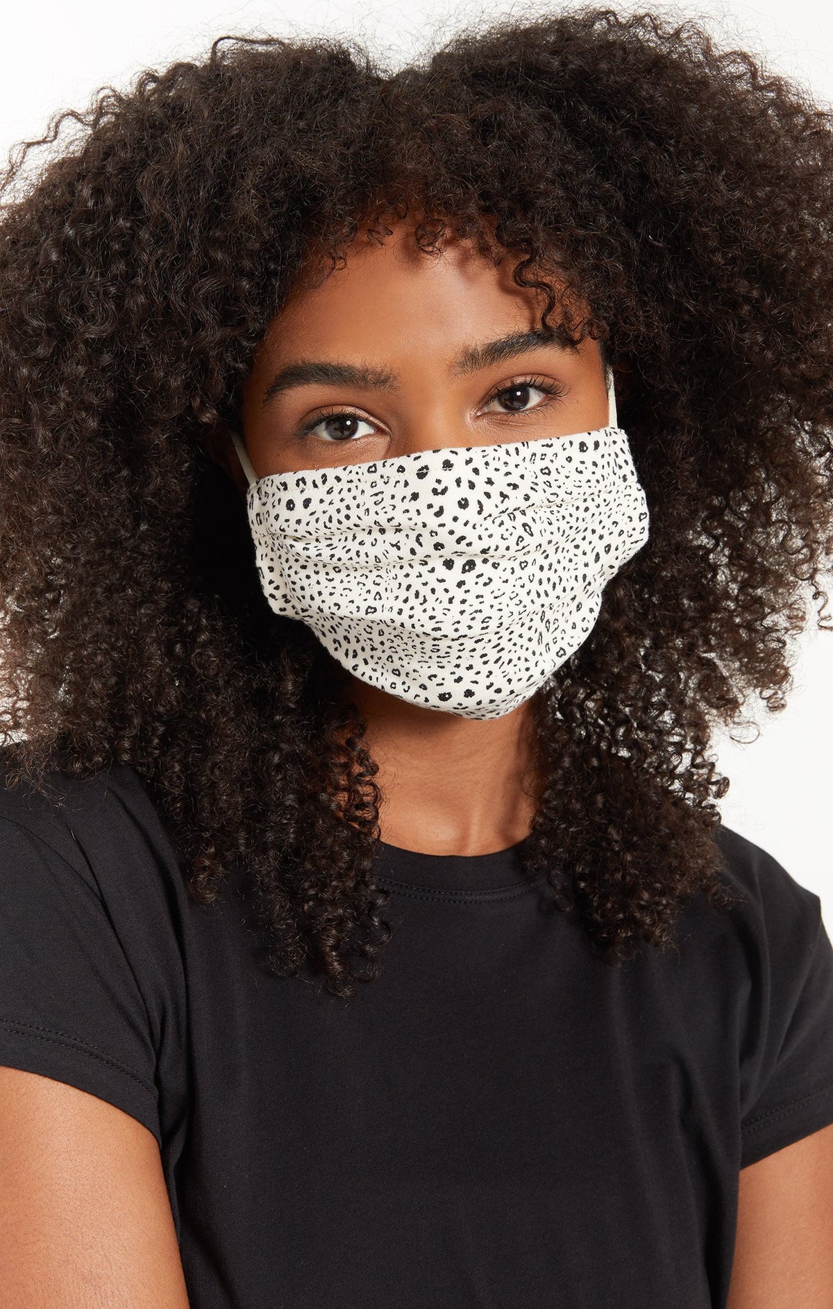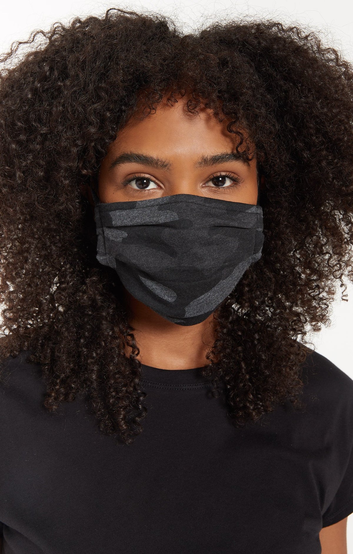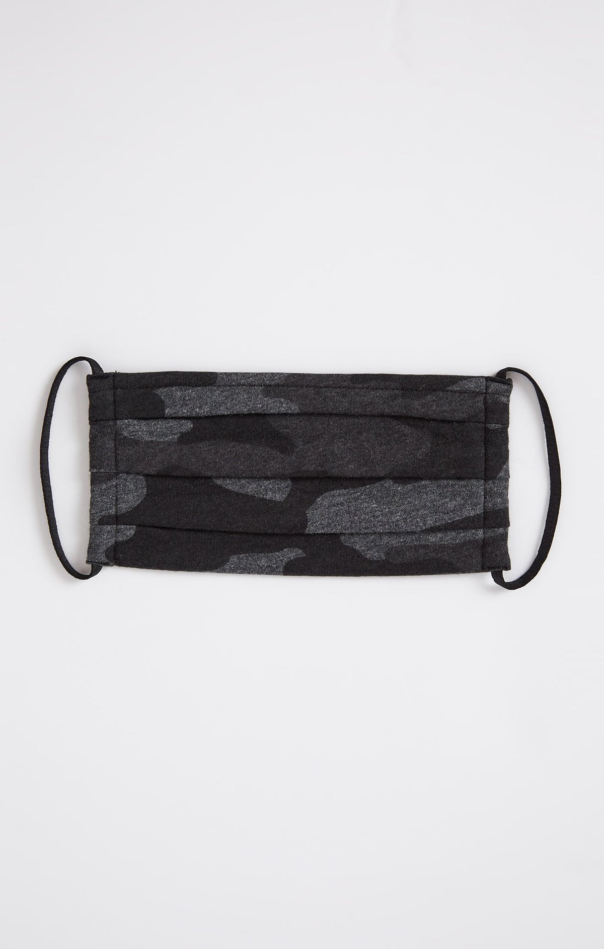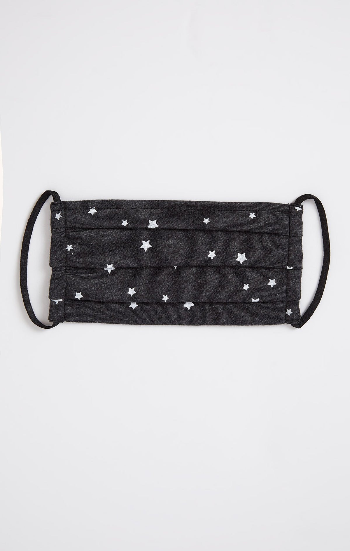 The Star Reusable Face Mask (4-Pack) contains four unisex non-medical pleated masks that are made from a cotton jersey knit fabric with a 100% cotton lining and antimicrobial spandex jersey interior. Each mask has elastic straps that go over each ear for easy wear. This pack comes with one Charcoal, one Camo Dark Charcoal, one Bone with a leopard print, and one Charcoal with stars.