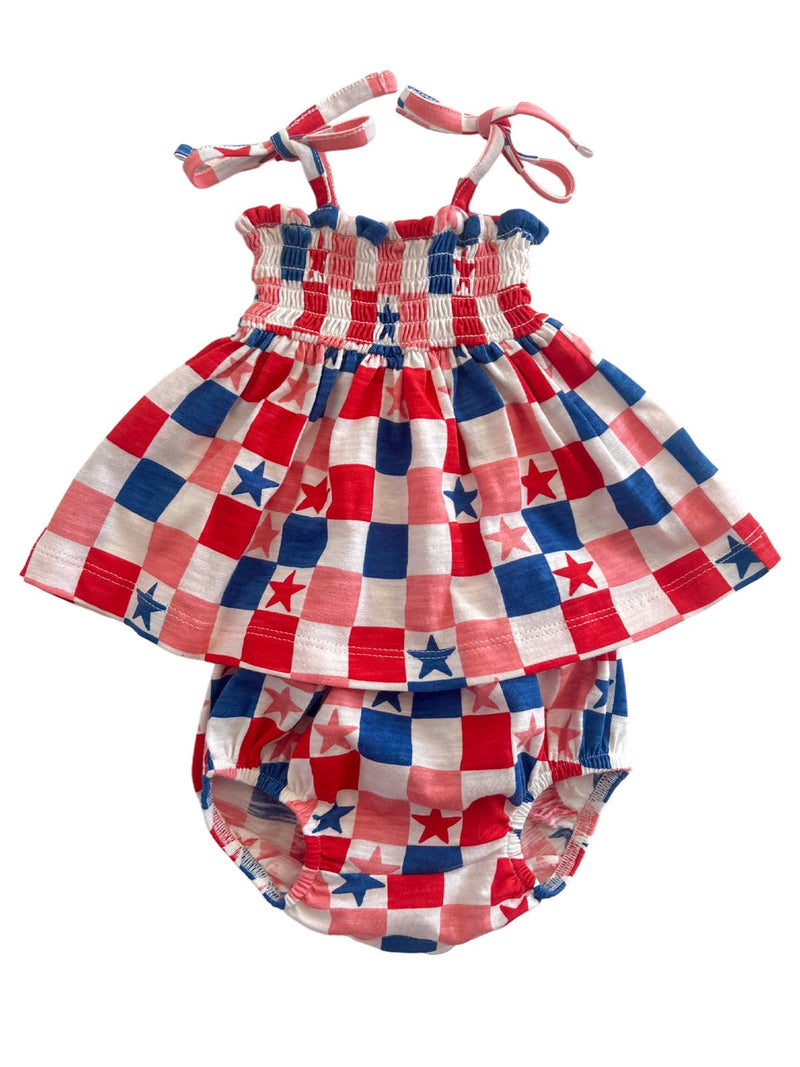 Red, White, Blue & Pink Checkerboard / Organic Smocked Set