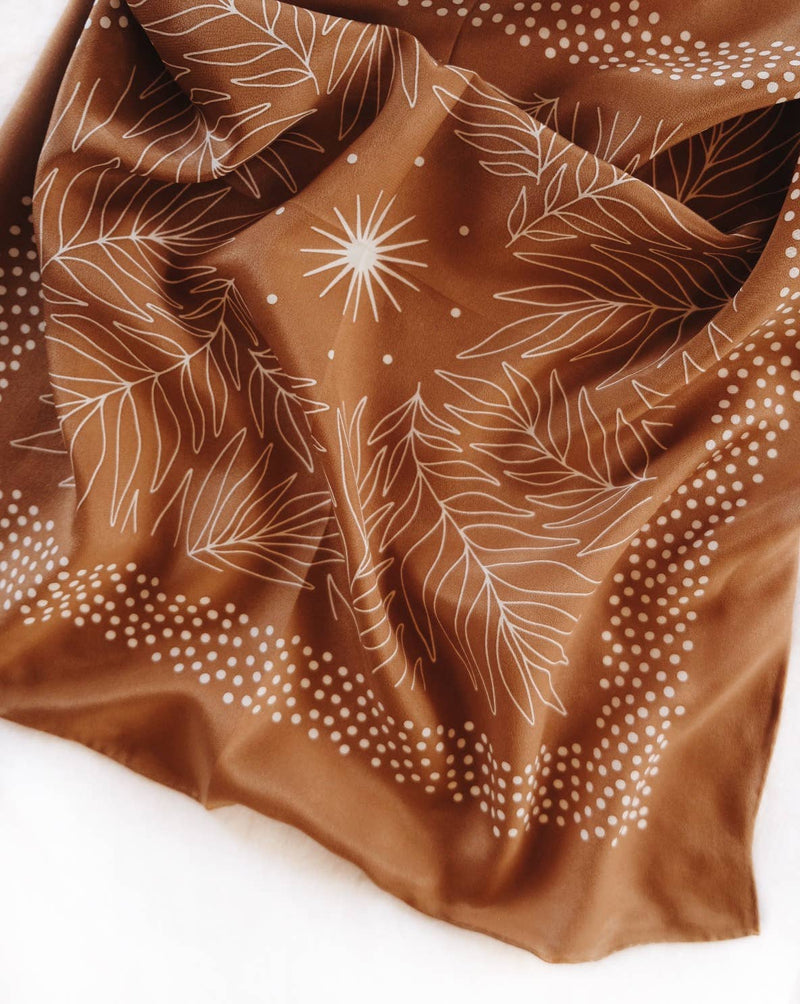 100% Silk Bandana Scarf - Tropical Palms Amber