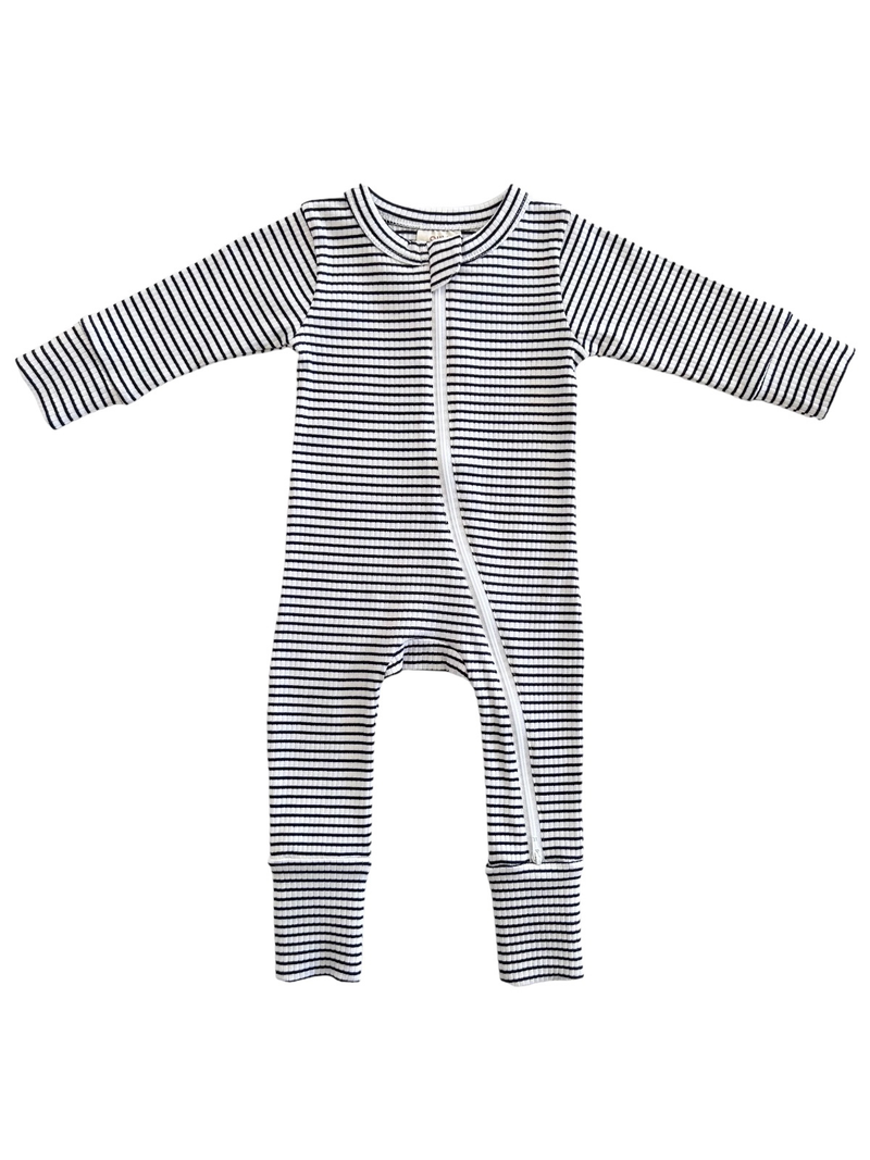 Black Stripe / Organic Ribbed 2-Way Zip Romper (Baby - Kids)