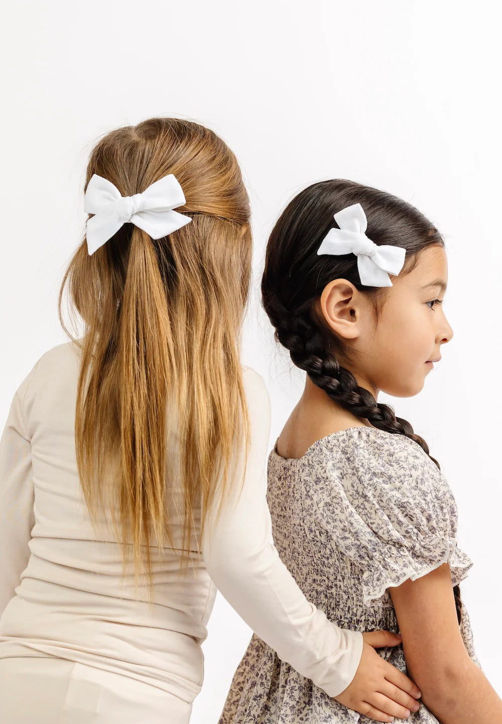 This is the perfect classic bow for your darling little girl! Each bow is hand tied and is attached to either a one-size-fits-all nylon headband or alligator clip. All bows are secured so they do not come undone!