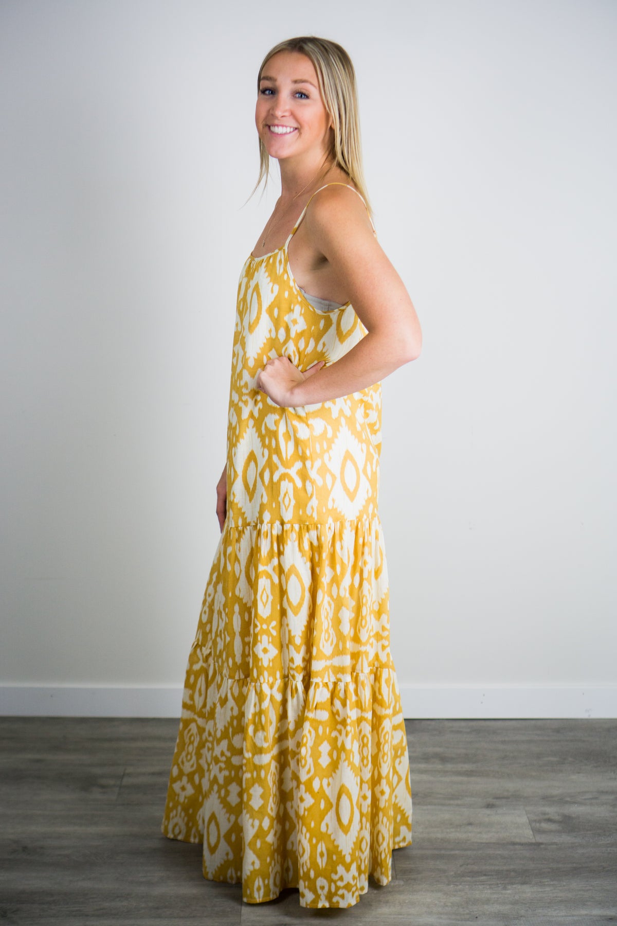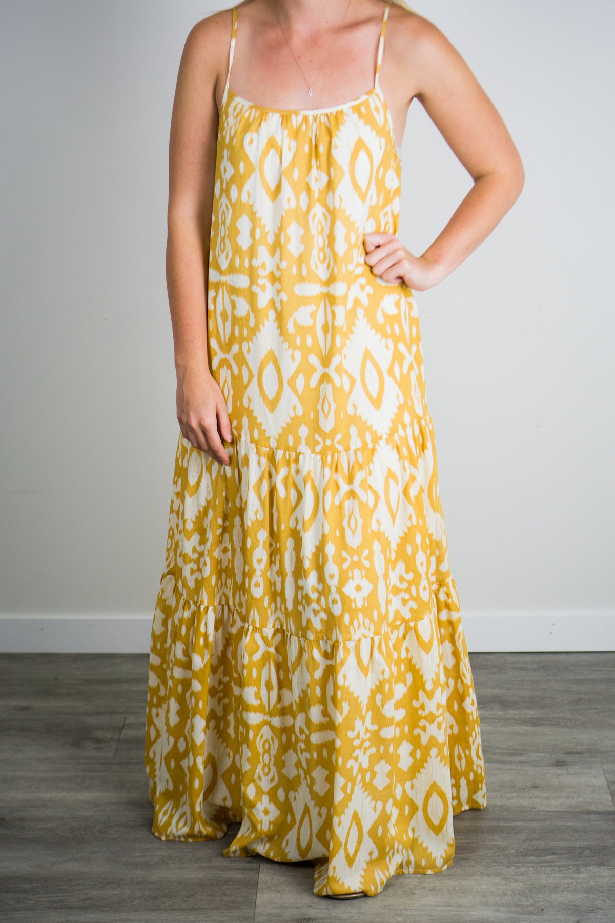 Set all of your clocks and watches to island time so you can luxuriate uninterrupted in the comfort of this breezy maxi cut from a batik-printed cotton weave.