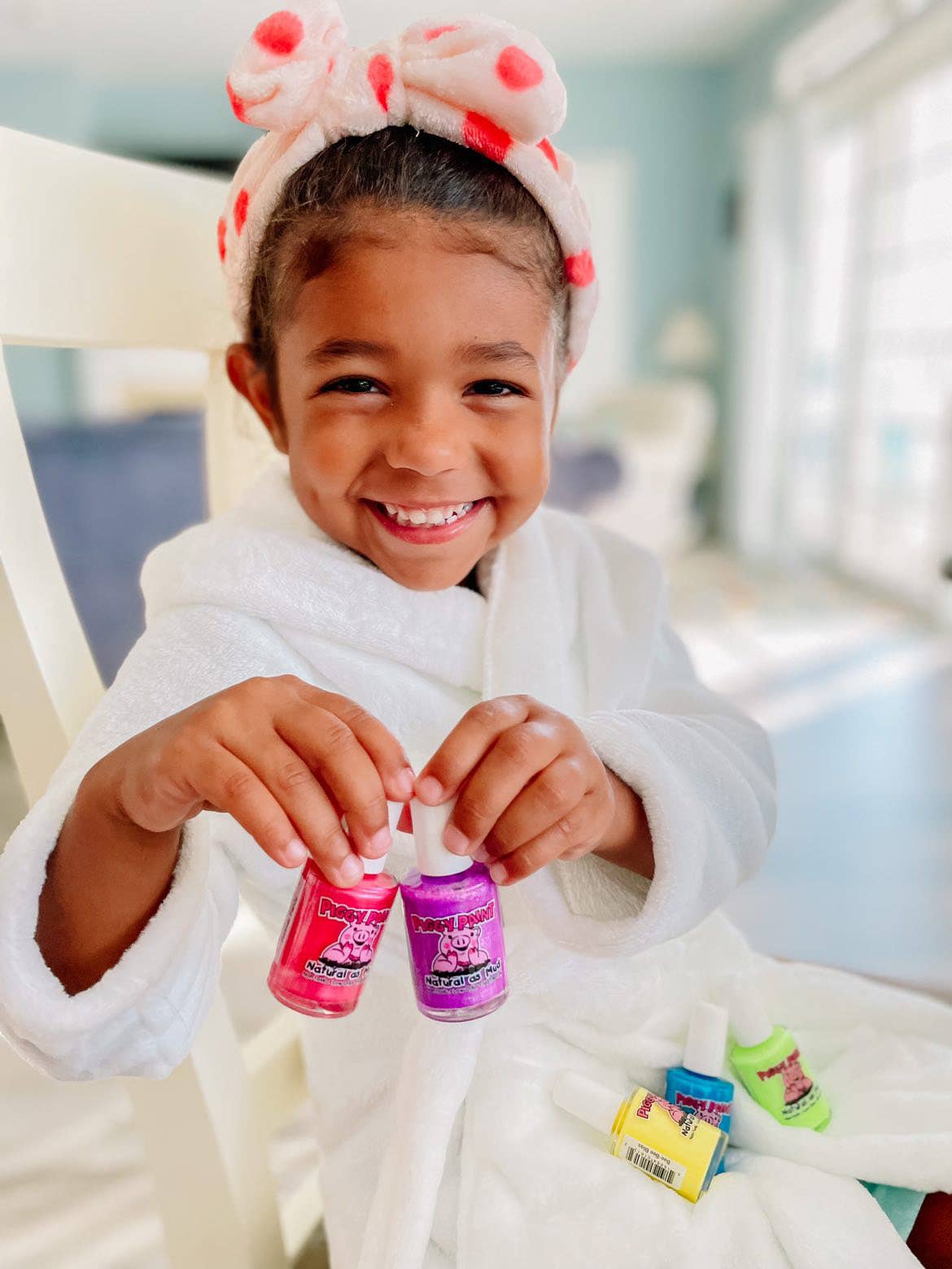 Piggy Paint is: - Non-toxic - Virtually Odorless - Water-based formula - Hypoallergenic - Fun, vibrant colors - Dries to a hard, durable finish - Cruelty-free - Does not peel - Kid-friendly l - Safe for use during Pregnancy! - Made in USA