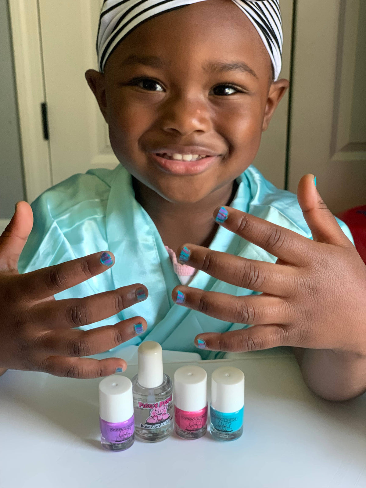 For maximum chip resistance. This revolutionary formula provides best wear for Piggy Paint nail polish. Use our 4 step application process for best results. 0.5 fl. oz. (15 ml) Piggy Paint is: - Non-toxic - Virtually Odorless - Water-based formula - Hypoallergenic - Fun, vibrant colors - Dries to a hard, durable finish - Cruelty-free - Does not peel - Kid-friendly l - Safe for use during Pregnancy! - Made in USA
