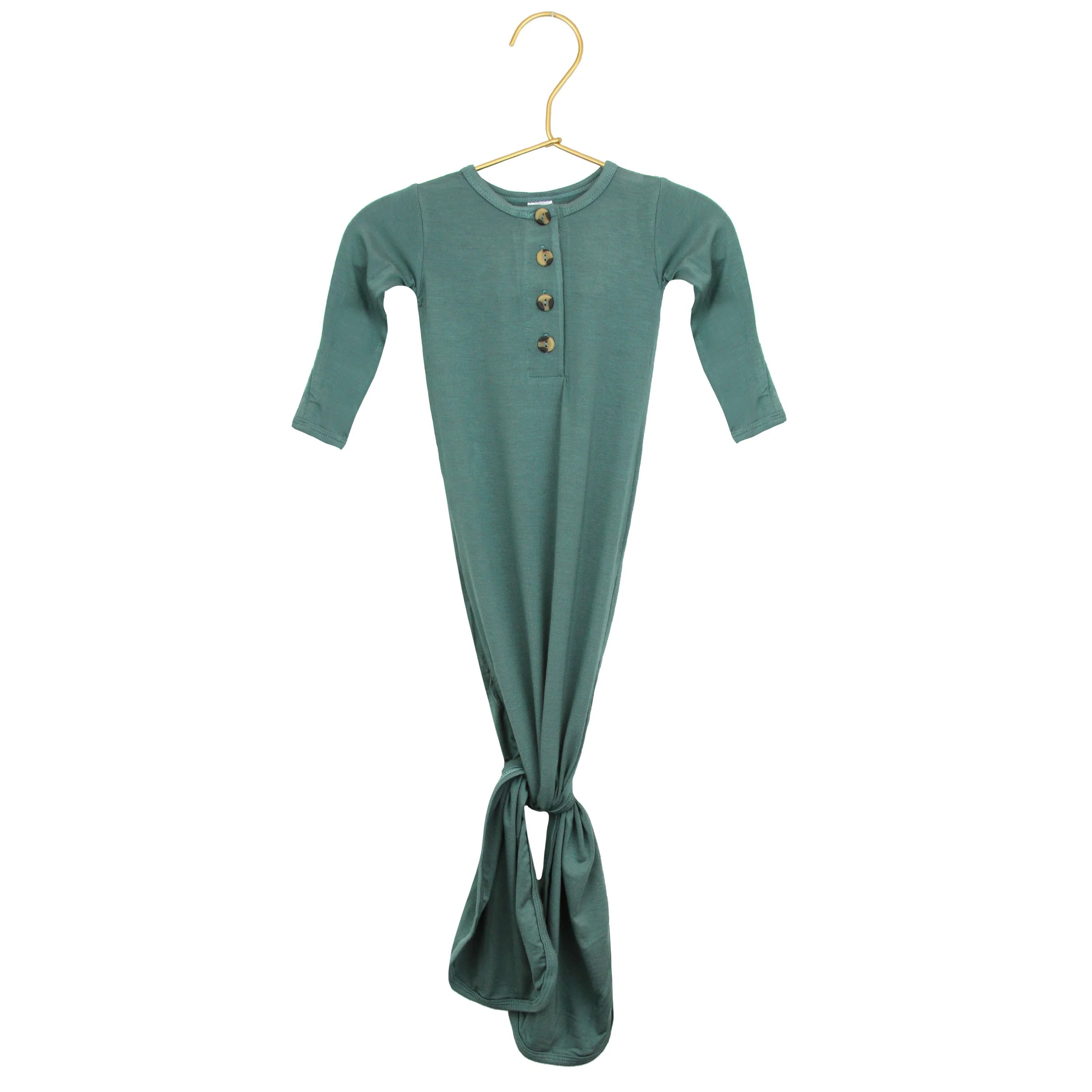 The easiest tie-bottom outfit for day or night. Made for hassle free diaper changes and gentle dressing, I designed this with a button-down front and tie bottom for simple closure (no more snaps at 2am!). Fold over wrist cuffs are the most thoughtful finishing touch.