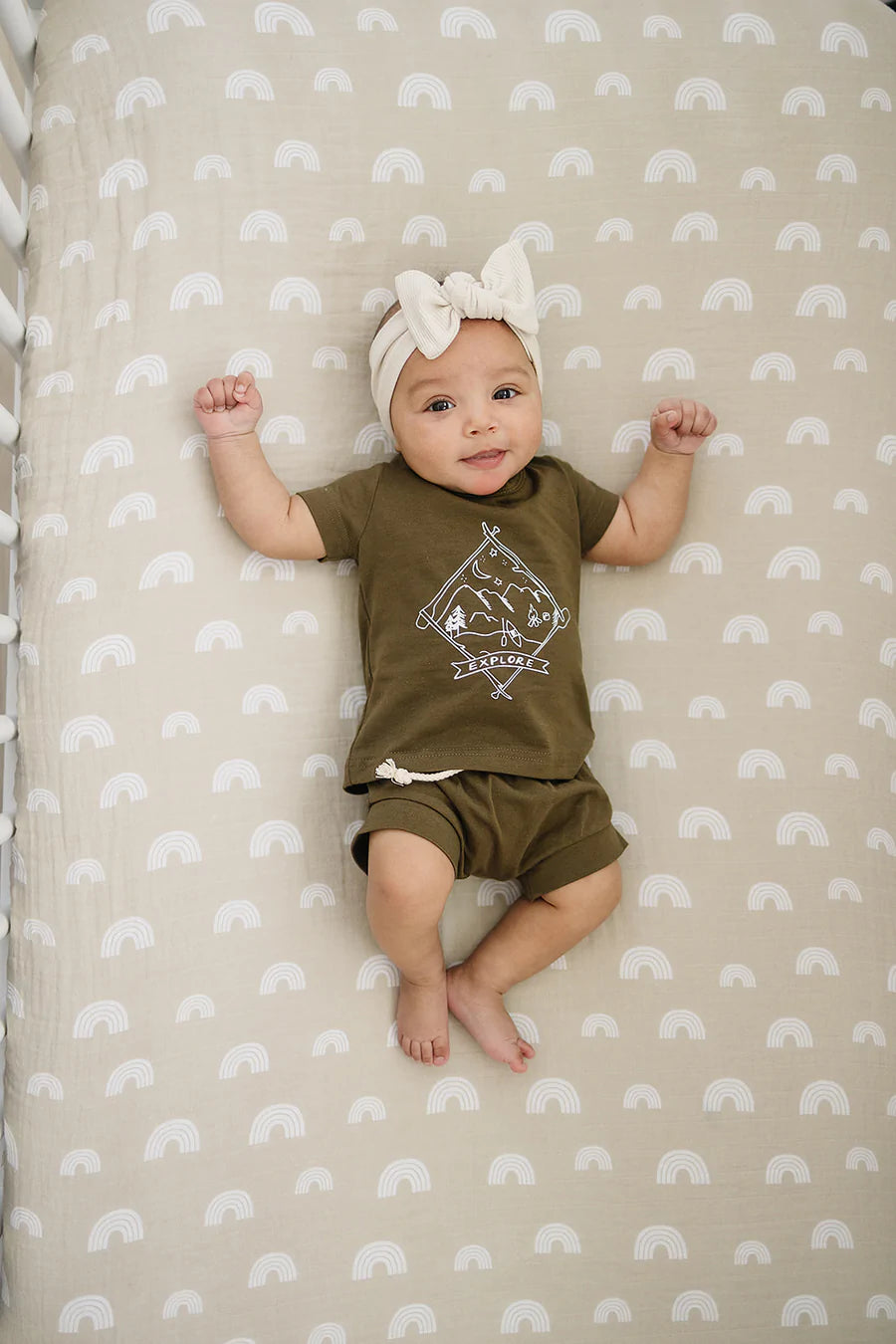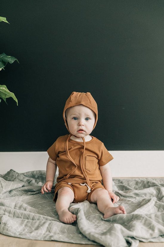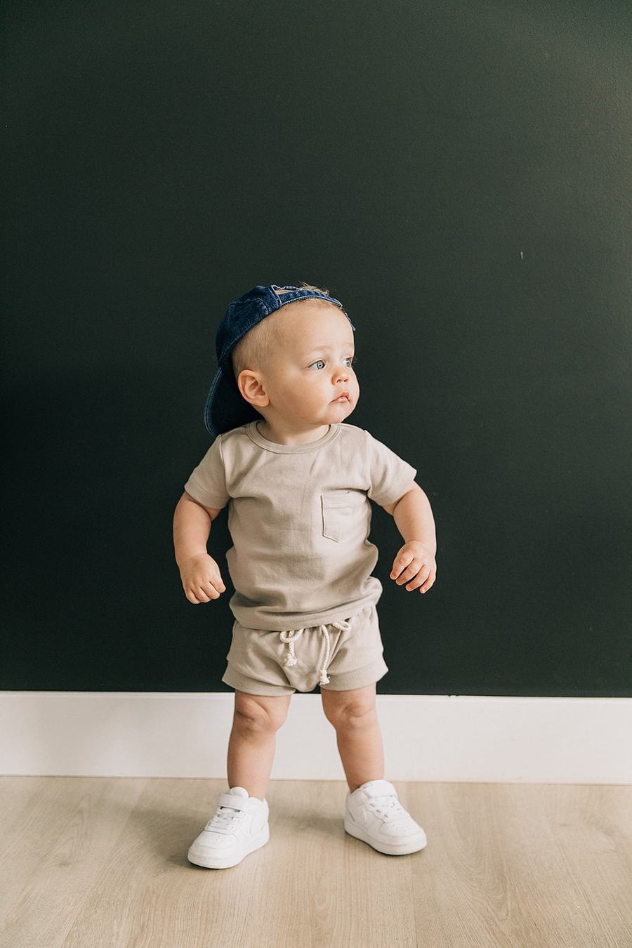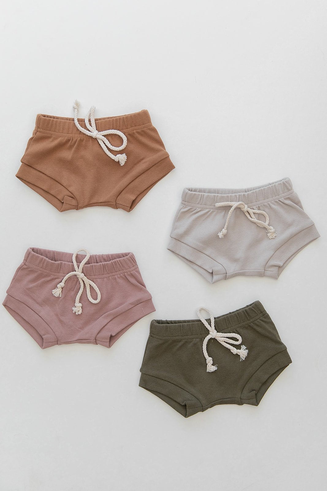 These are our cotton shorts. They are made out of a cotton fabric, they have an elastic and a faux tie on the waist!