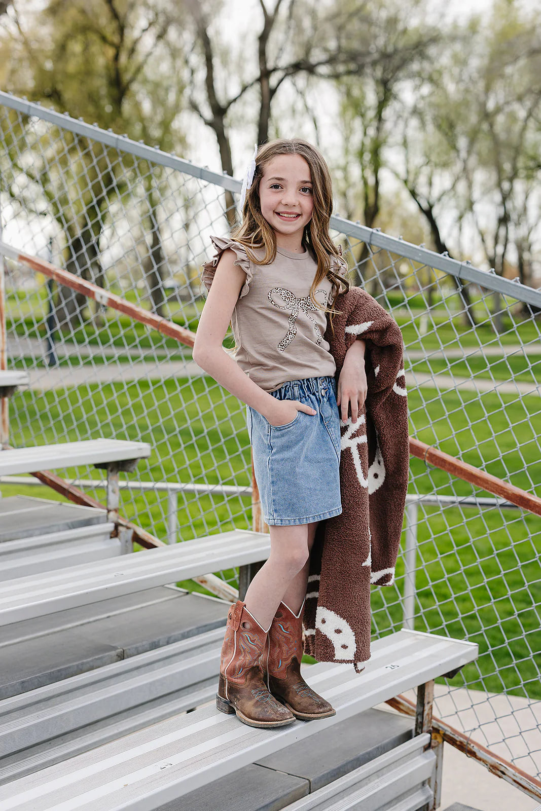 Our elastic waist Denim Skirt from the Rodeo Collection is just what your little cowgirl needs to look cute and stay comfortable! Crafted from soft, breathable denim and designed for easy movement, it’s perfect for pairing with boots, a ruffled top, and a whole lot of fun. Whether she’s heading to the county fair, the rodeo, or just out for some fun, this skirt brings western flair to every adventure!