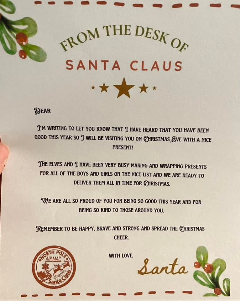 -Letter from Santa with room to write the child(ren) name