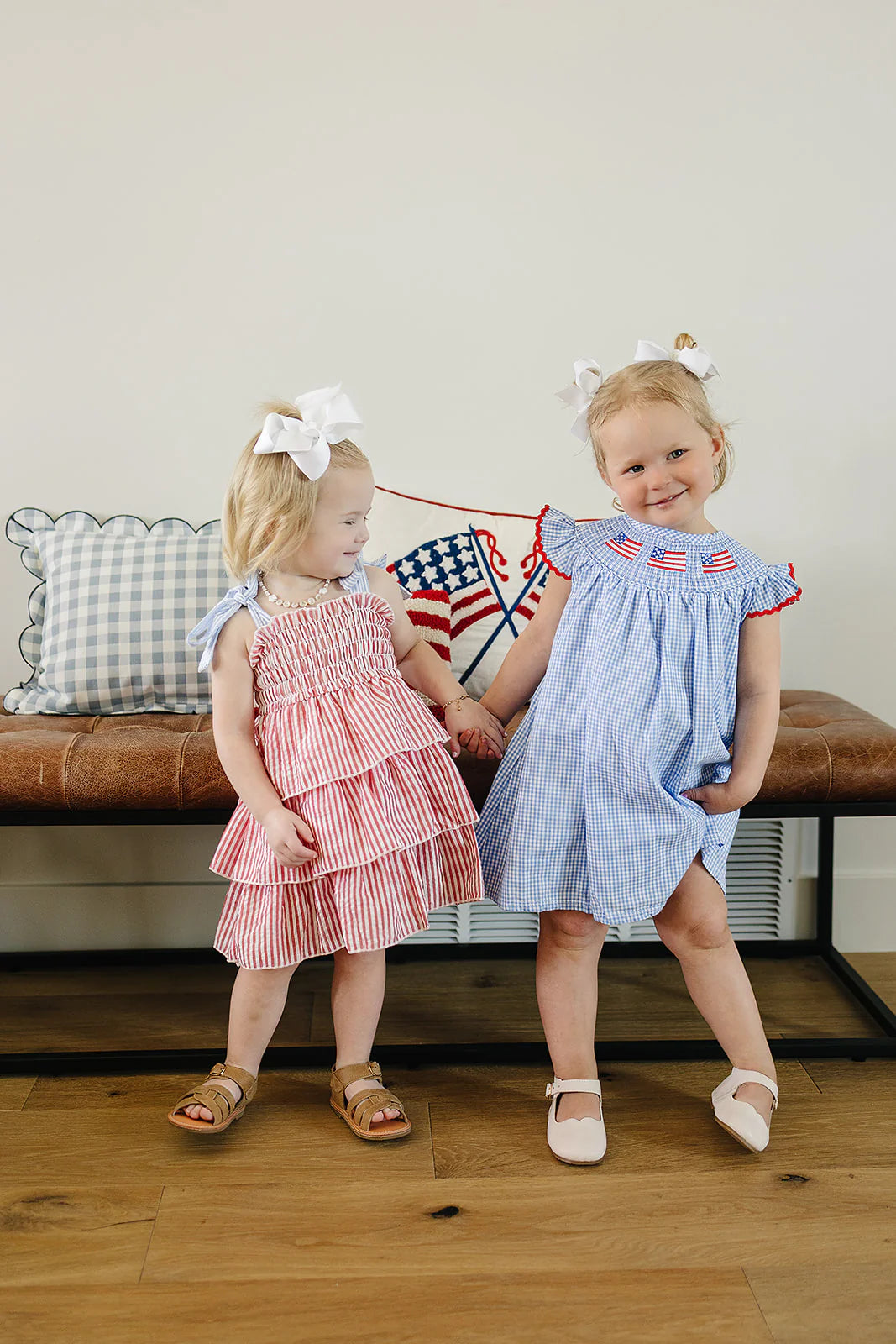 Let your little one shine in the Stripe Ruffle Dress, a charming and comfortable outfit perfect for warm-weather adventures. Featuring soft, lightweight fabric, classic striped patterns, and delicate ruffle details, this dress is designed for effortless style and all-day comfort.
