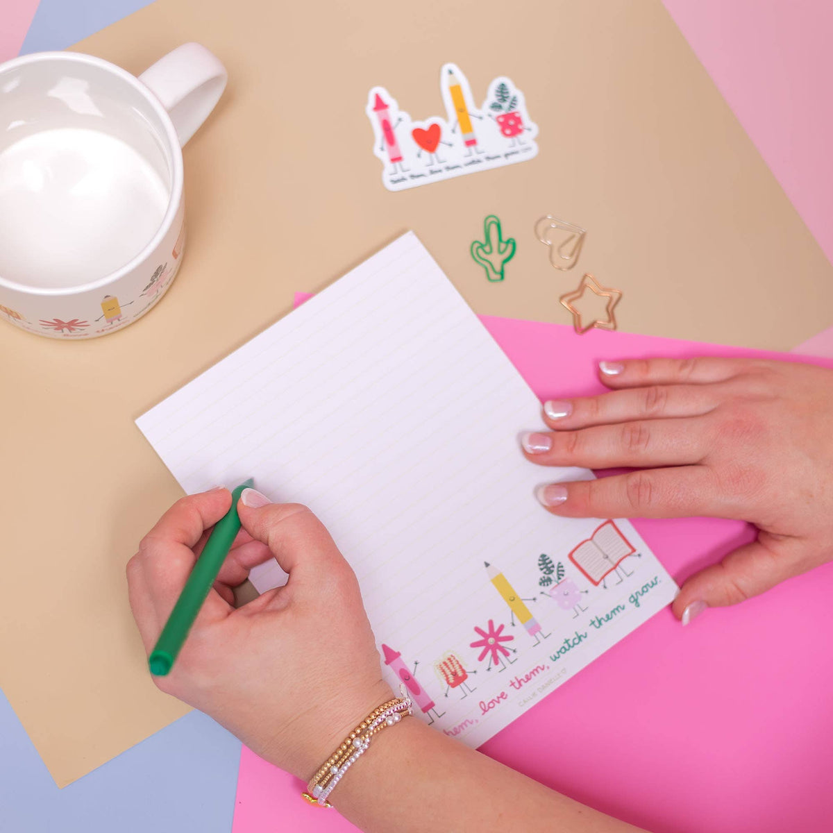 Celebrate the growth and nurturing spirit of teaching with the Teach Them, Love Them, Watch Them Grow Notepad. Featuring a charming design with houseplants, this notepad beautifully reflects the care, patience, and love that teachers, mentors, and caregivers put into helping others grow and thrive. Whether you're jotting down lesson plans, daily to-do lists, or heartwarming notes, this notepad serves as a constant reminder of the positive impact you have on others.