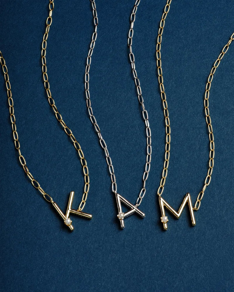 Let your personality pop when you wear the Pearl Silver Letter A Short Pendant Necklace in White Pearl. This oversized, angled letter pendant will really put you front and center (because where else would you be?). Topped with a cultured freshwater pearl for that extra wow factor, there’s no way people won’t be asking about this must-have layerable.