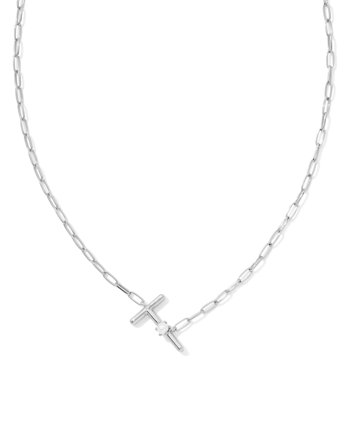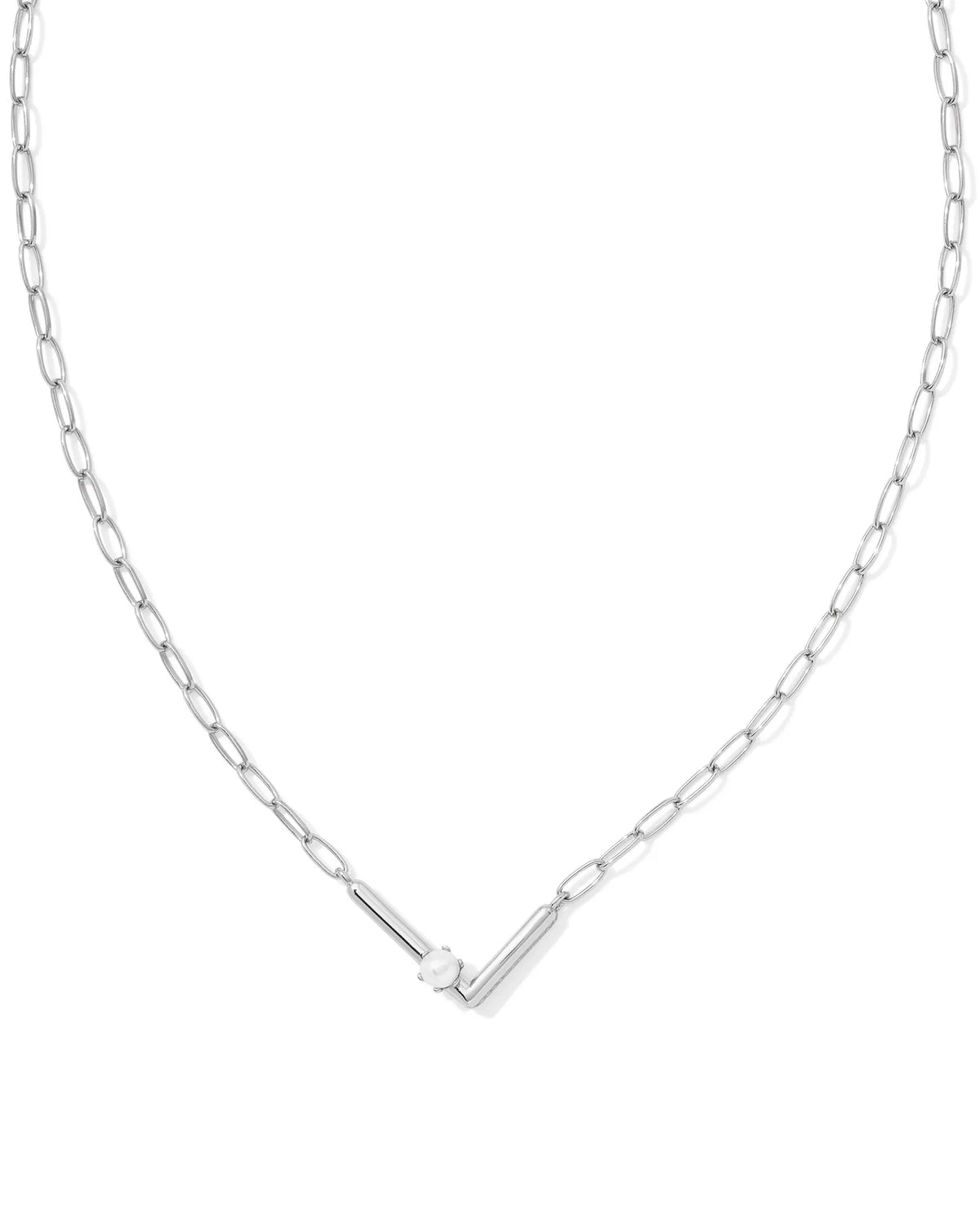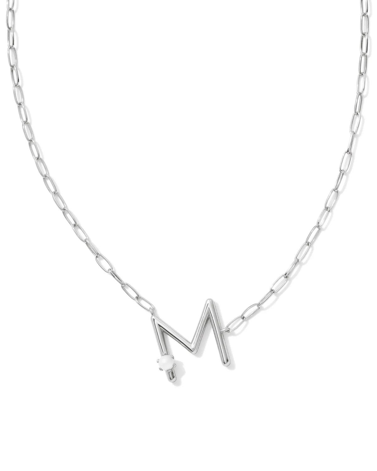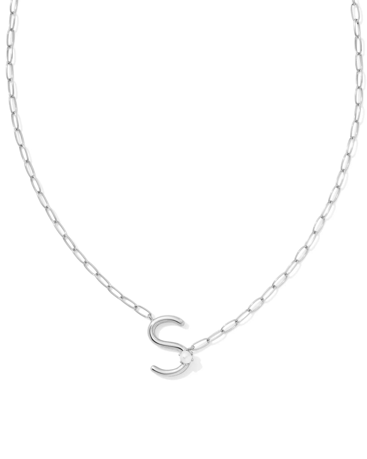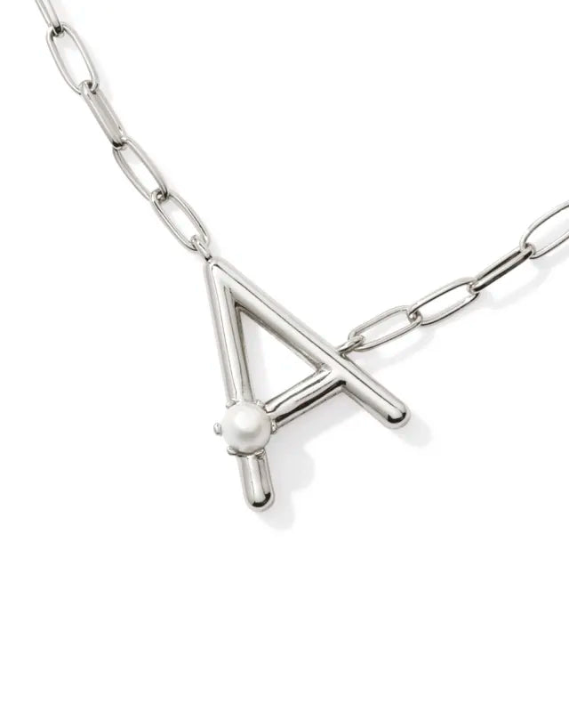 Kendra Scott Pearl Silver Letter Short Pendant Necklace in White Pearl
