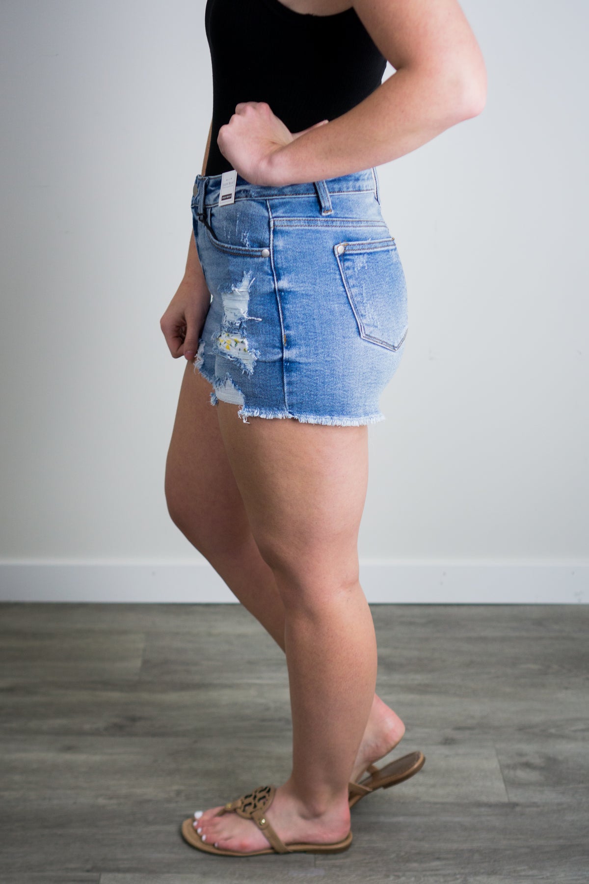 Judy Blue Mid-Rise Lemon Patch Destroyed Shorts