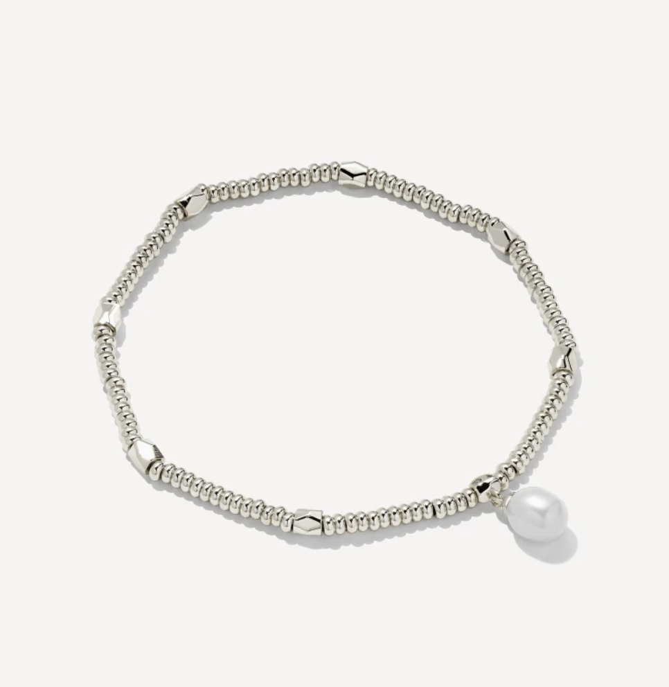 Simple, polished, and easily a classic, meet the Lindsay Stretch Bracelet with White Pearl detail. Designed to fit any wrist, stack as you please with this minimalist stretch bracelet.
