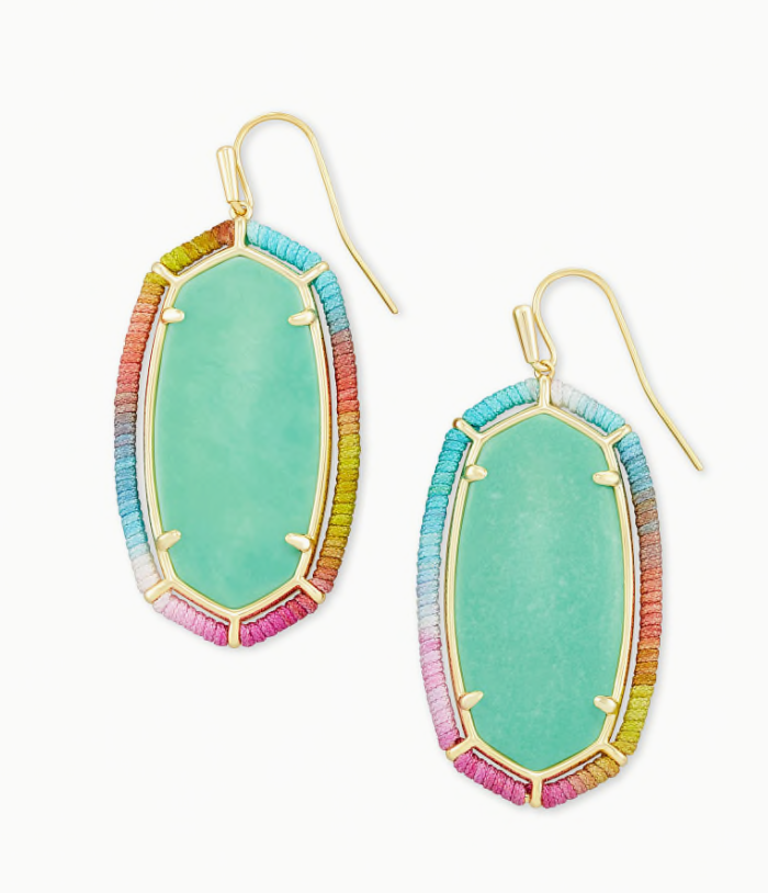 Enjoy life in a rainbow of color! The Threaded Elle Drop Earrings are designed by hand-wrapping ombre thread around our one-of-a-kind stone silhouettes. Celebrating a classic Kendra Scott design with a handcrafted accent, meet our summer ready statement prepped for an endless summer of fun.
