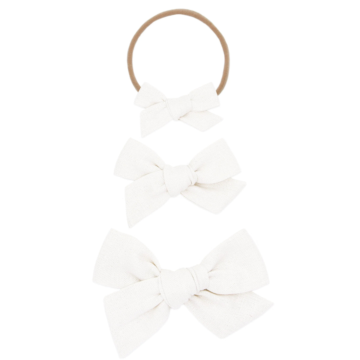 This is the perfect classic bow for your darling little girl! Each bow is hand tied and is attached to either a one-size-fits-all nylon headband or alligator clip. All bows are secured so they do not come undone!