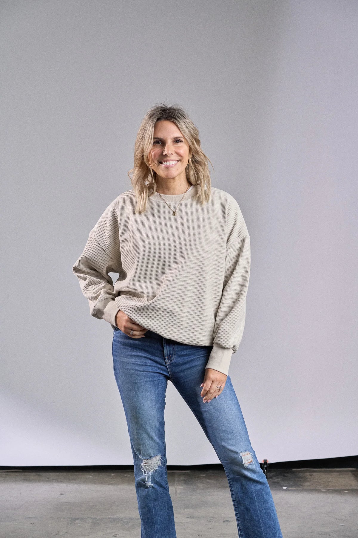 ADULT ELEVATED WAFFLE CREWNECK - GREIGE