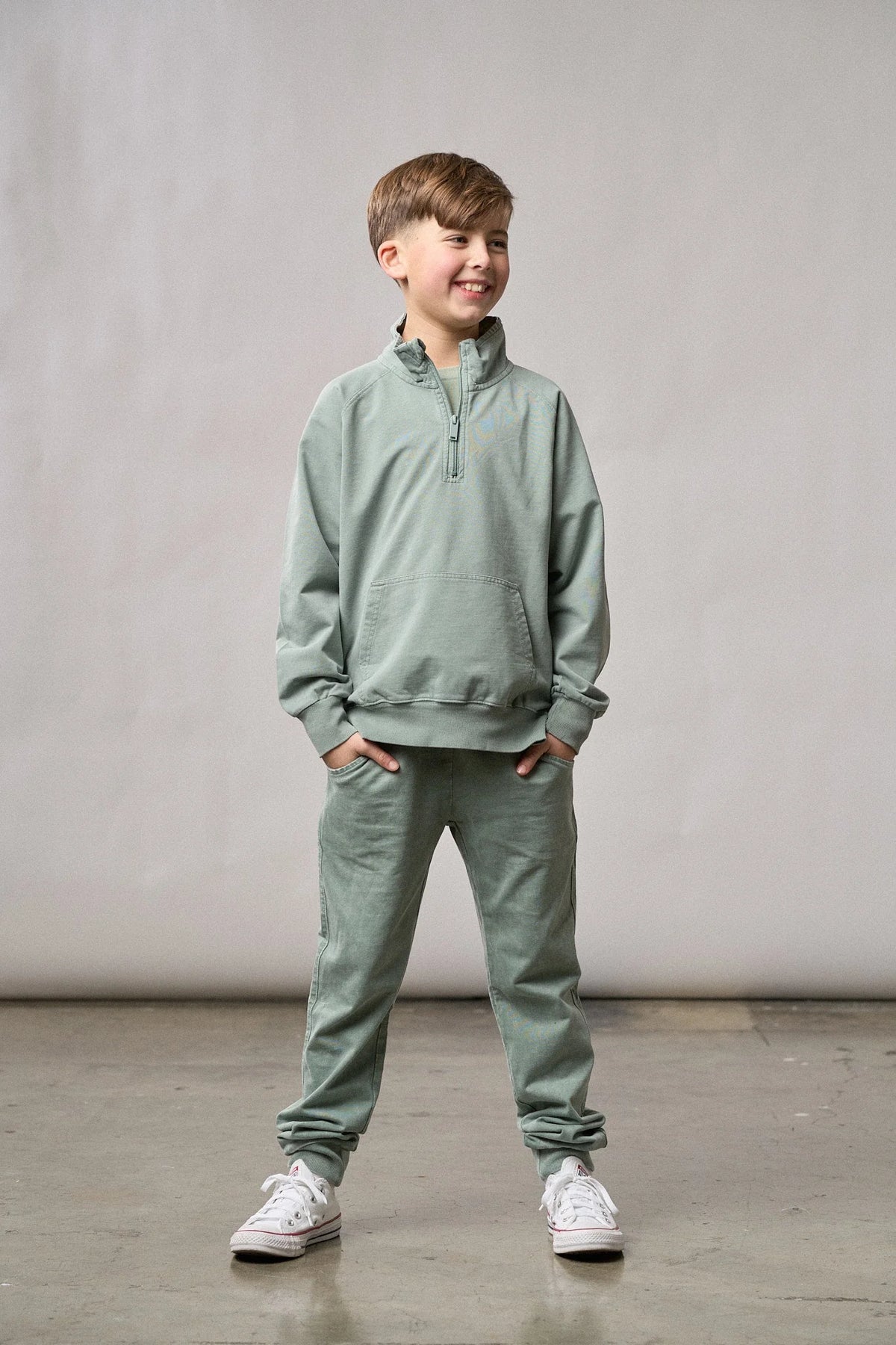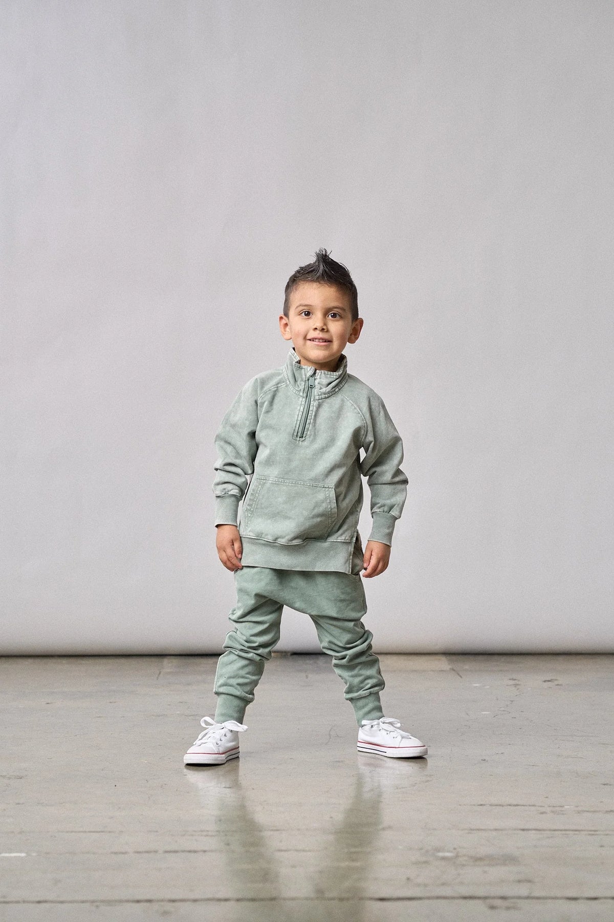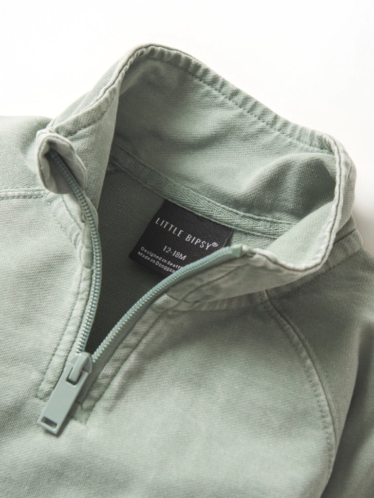 Little Bipsy Quarter Zip Pullover - Basil Wash