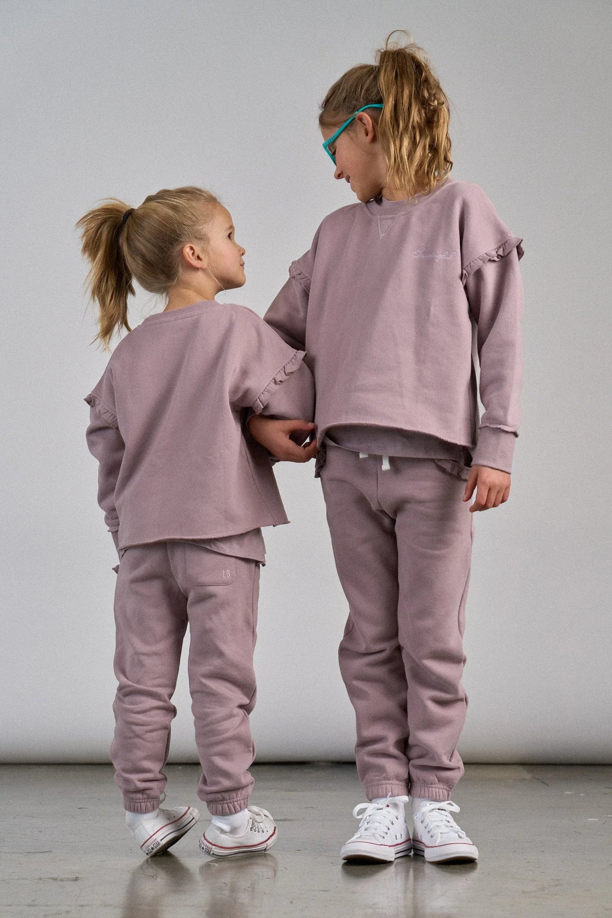 Keep your little one comfy in our light-heather grey ruffle sweatpants! These adorable pants feature cute flutter details on the side seam pockets, adding a fun twist to a classic design. The signature LB embroidery logo on the back pocket adds a subtle touch of style.