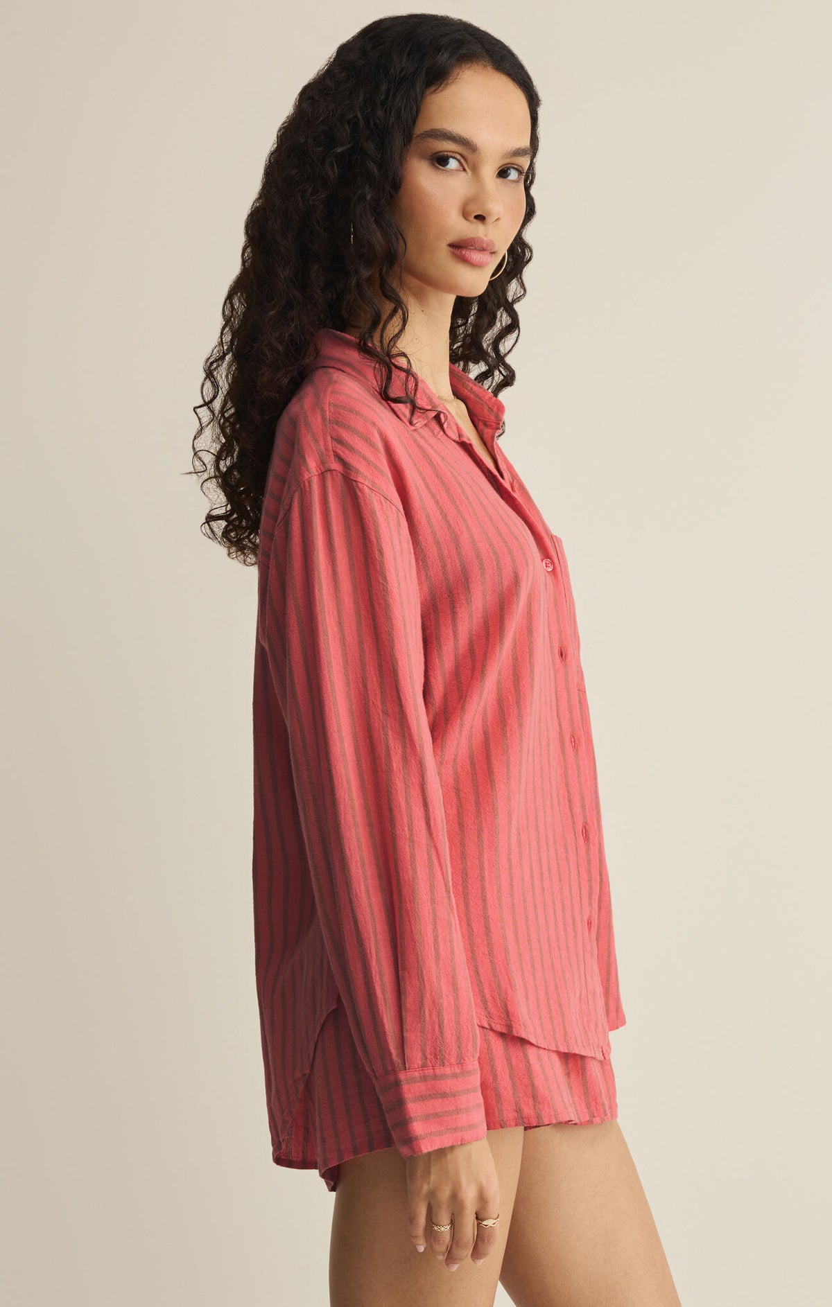 A fresh take on a classic, this linen button up shirt features a relaxed drape and subtle texture. Vertical stripes have a flattering effect, while a relaxed collar, chest pocket, long sleeves, and curved hem make it easy to wear layered or half-tucked.