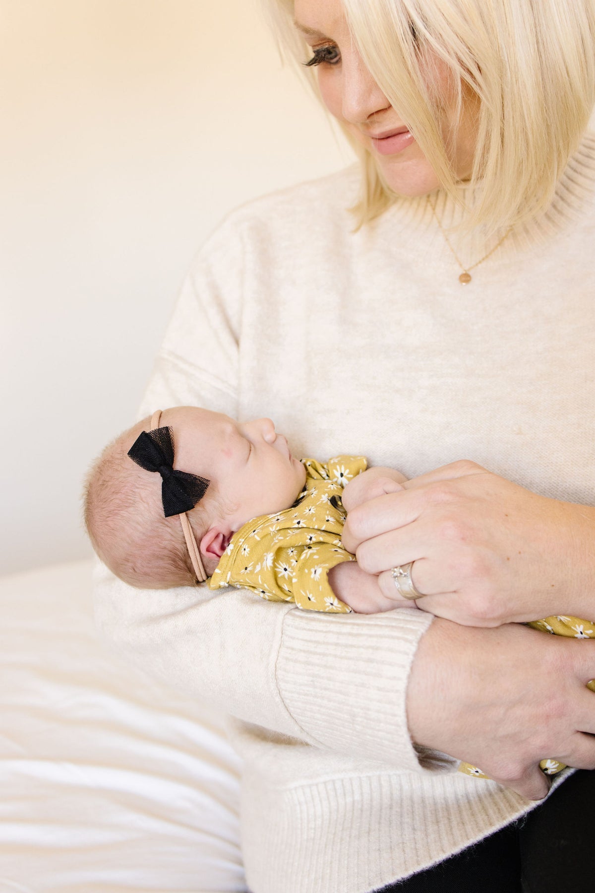 The perfect bow for your darling little girl! Each bow is hand tied by stay at home moms and is attached to a one-size-fits-all nylon headband. All bows are secured so they do not come undone! They are so buttery soft and add the perfect feminine touch to your little ones outfit.