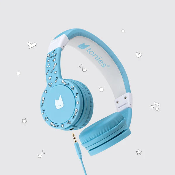 Light blue tonies® headphones for kids have a foldable design for practical storage, traveling, and other features that make them great for kids. These headphones offer a kid-safe limit of 85 dB, adjustable cushioned earpads, and a padded headband that allows them to grow with your child comfortably.