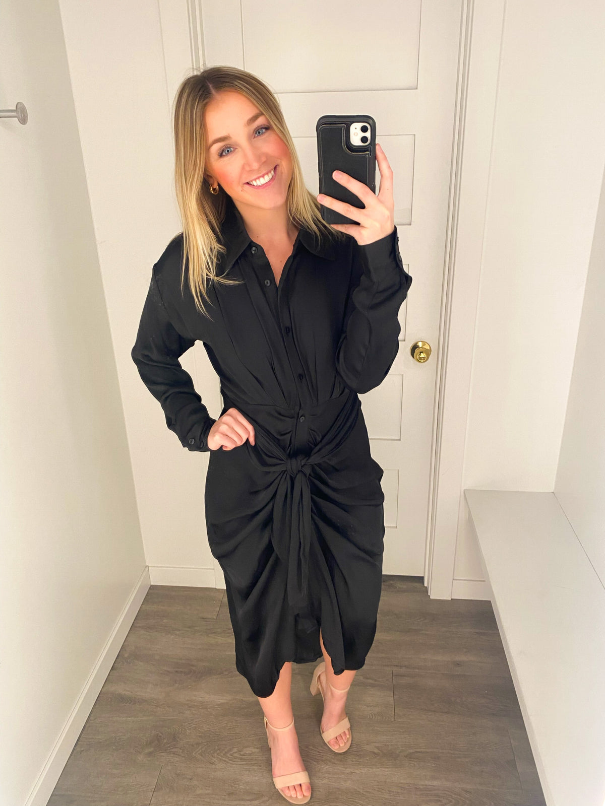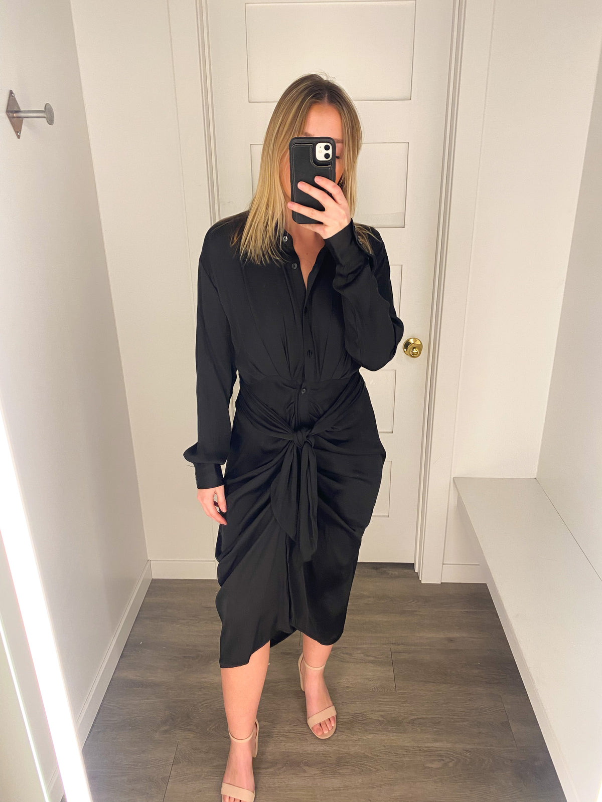 Attached wrap tie detail - Lightweight ruched satin fabric