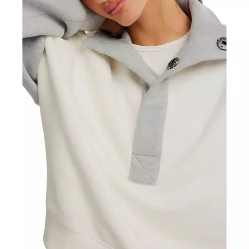 So cozy and essential, this wear-everywhere pullover features a funnel neck design with quarter-button detail and ribbed trimming for added dimension.