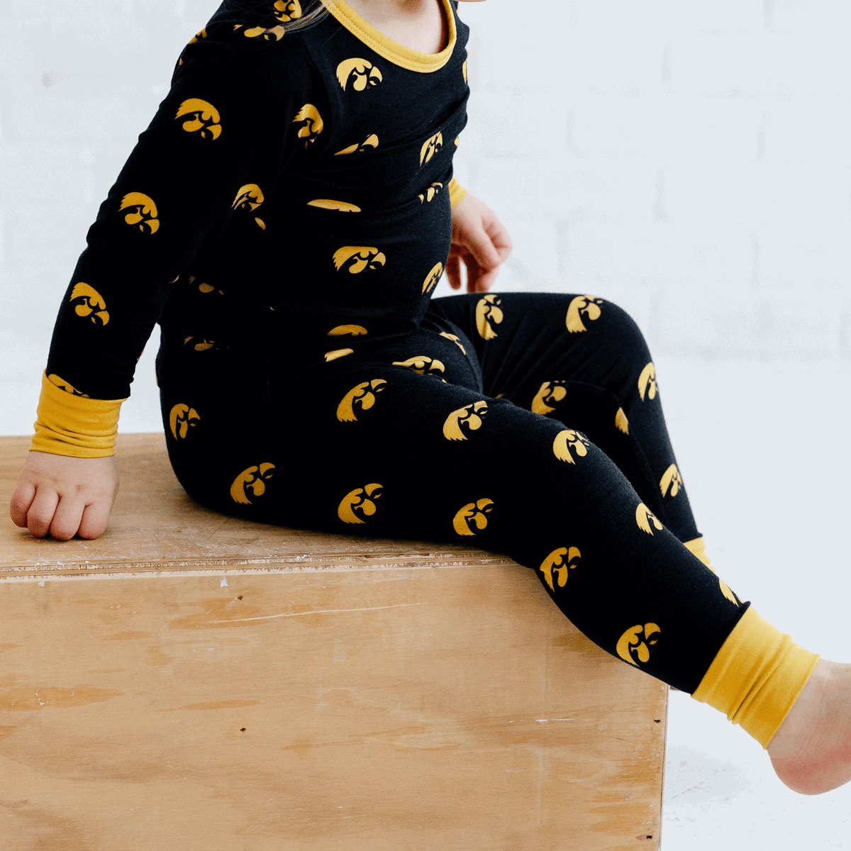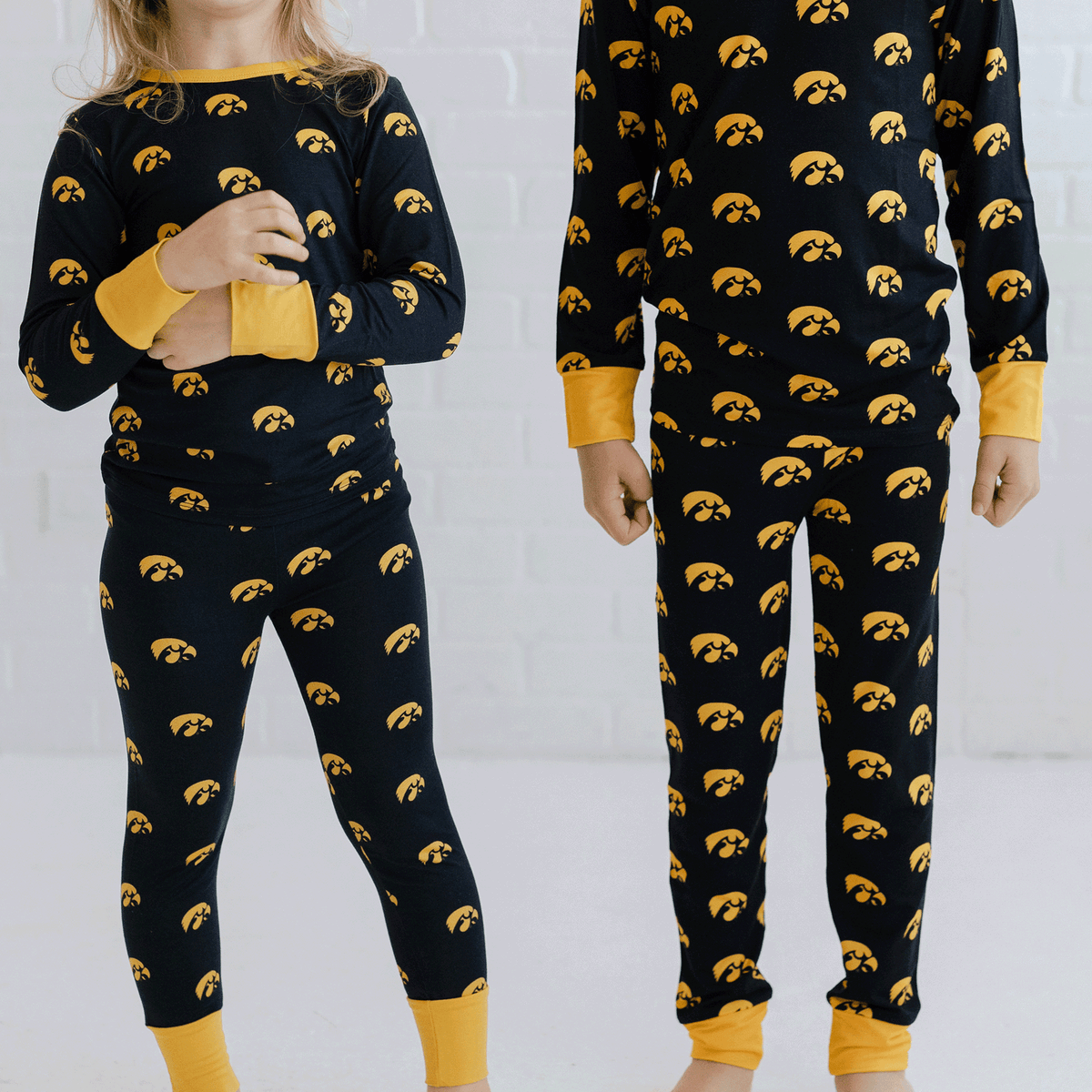 Dream of victory in our officially licensed Iowa Hawkeyes Bamboo Pajama Set. Crafted from ultra-soft, breathable bamboo, this true-to-fit set keeps your little fan comfortable all night. The Hawkeyes print adds school spirit, making bedtime cozy and full of Hawkeye pride.